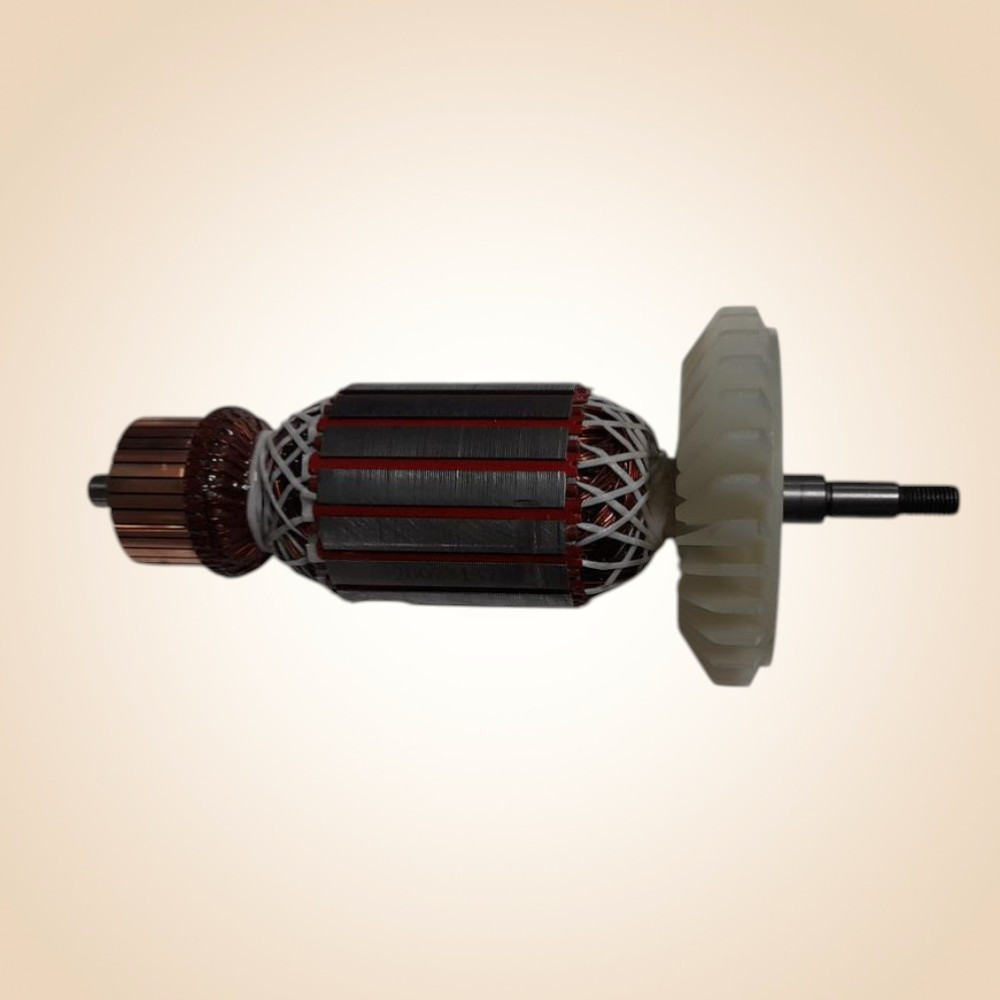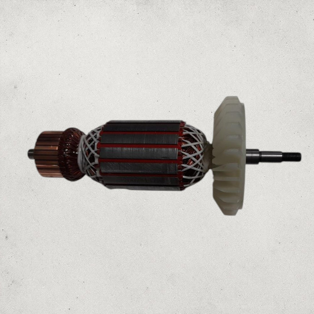 A Rotor AG24-230H alkatrészszám 25 eredeti Worcraft pótalkatrész, amely új lendületet ad a meggyengült sarokcsiszoló motornak. A sűrű, vörösréz tekercselésű armatura és a gondosan rétegezett acélmag hatékony energiaközlést biztosít, miközben minimalizálja a hőtermelést. A precízen esztergált réz kommutátor sima áramátvitelt nyújt, a strapabíró, üvegszál erősítésű műanyag fogaskerék pedig csendesebb működést tesz lehetővé. Cseréjével visszakapod a gép eredeti teljesítményét és fordulatszámát.