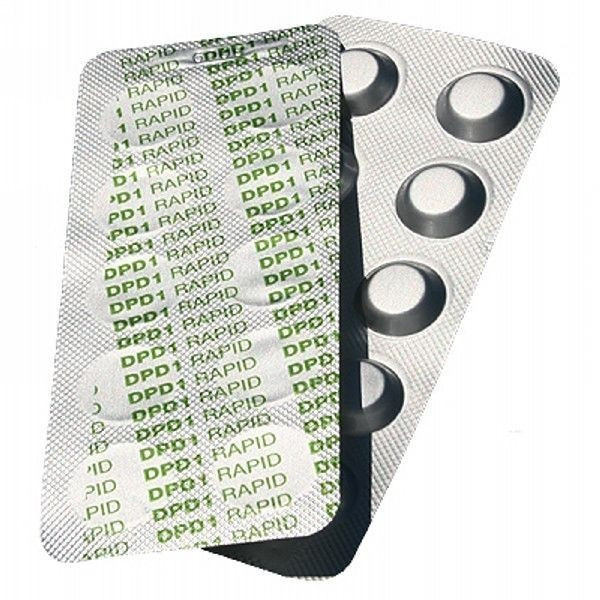 Szabad klór érték mérésére alkalmas indikátor tabletta.