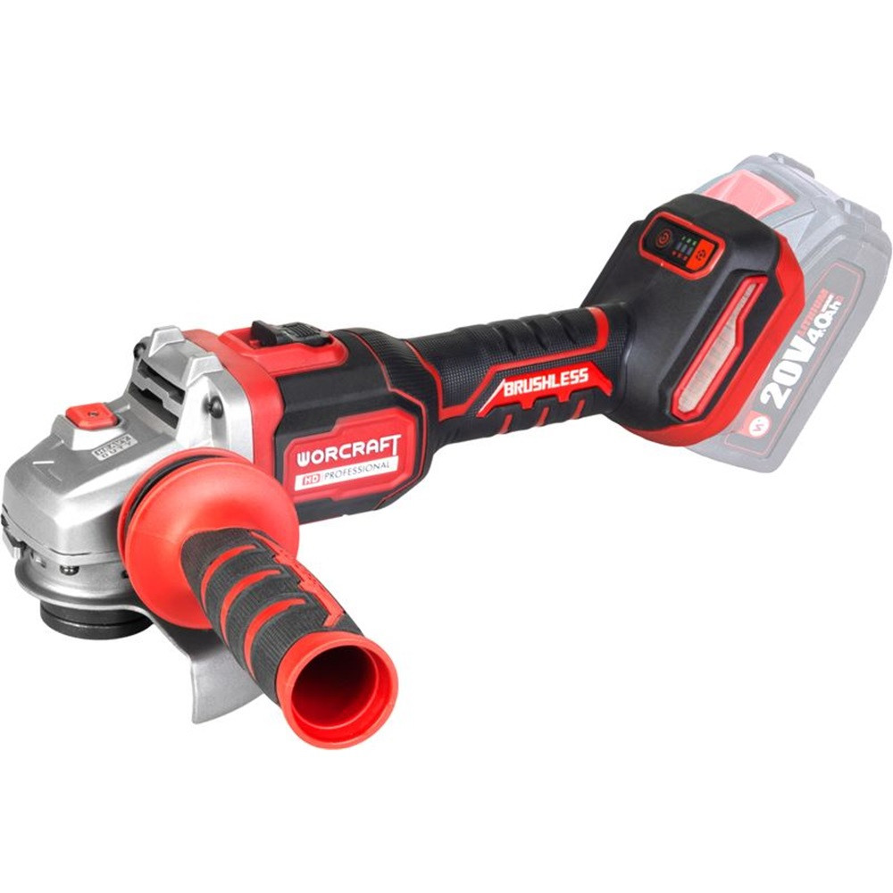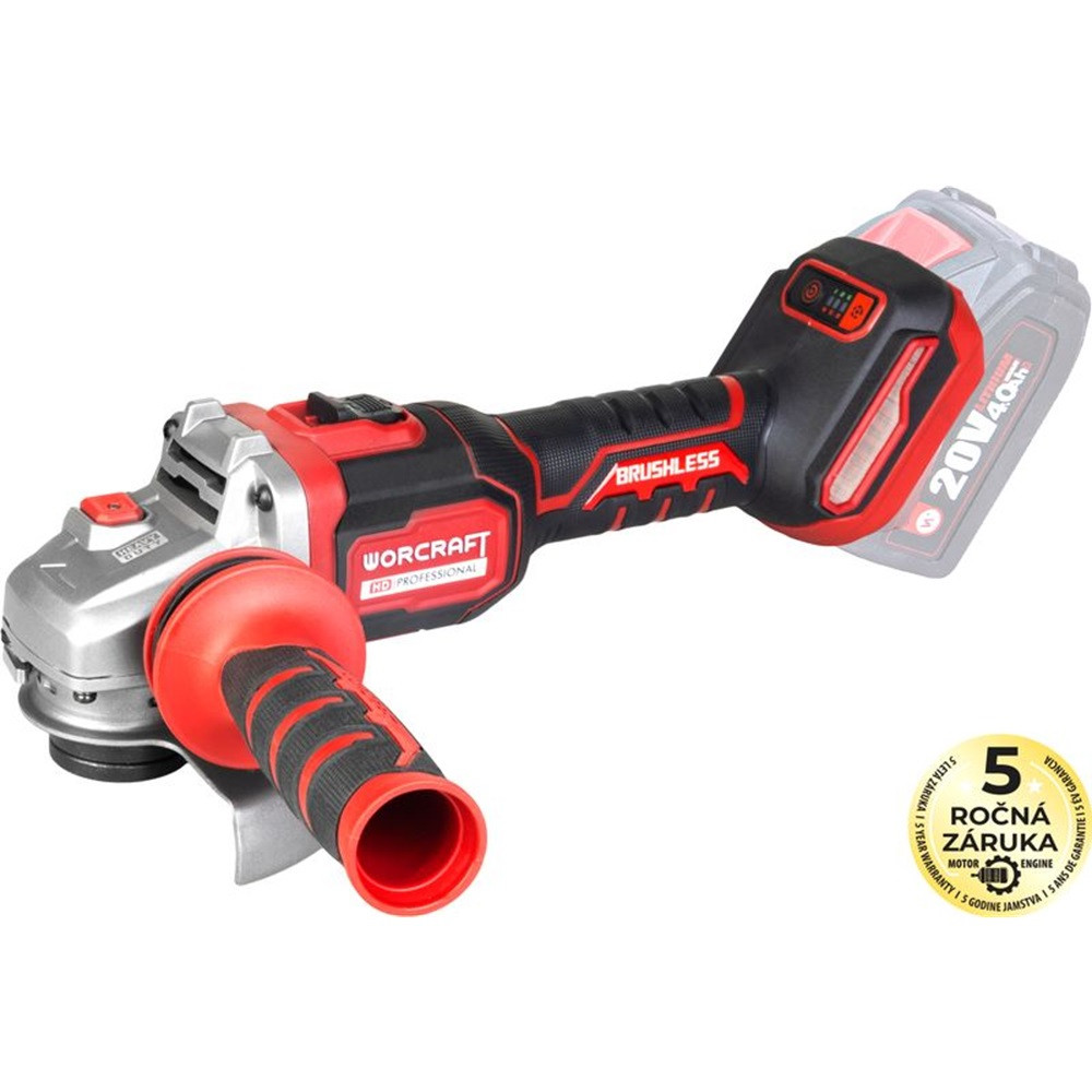 Akkumulátoros sarokcsiszoló, Worcraft CAG-S20LiBM, ShareSYS, piros/fekete, 125 mm, 20 V Li-Ion, 9500 fordulat/perc, akkumulátor és töltő nélkül