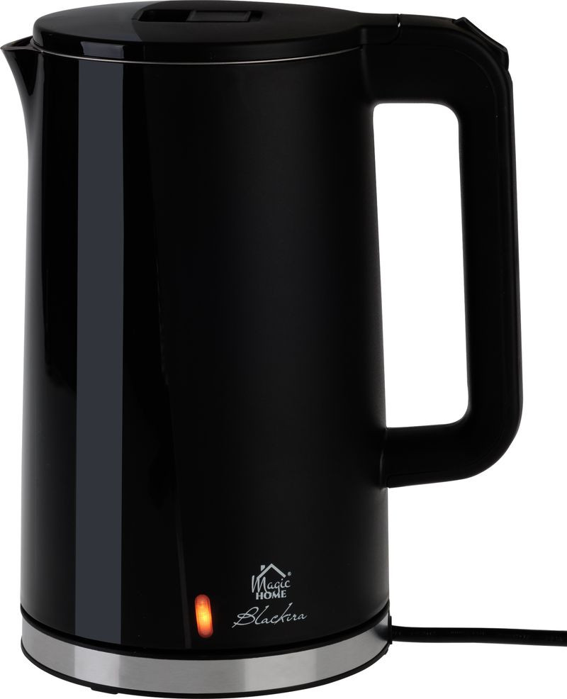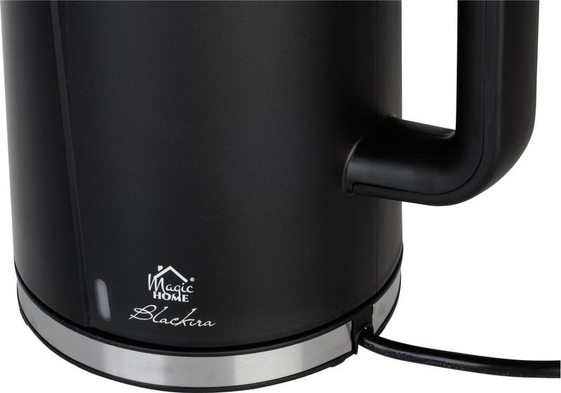 Élvezd a forró italok pillanatok alatt elkészülő kényelmét a MagicHome Blackira gyorsforralóval! A 1,7 literes kapacitásnak köszönhetően egyszerre főzhetsz vizet a családnak vagy a kollégáknak, a 1850–2200 W-os teljesítmény pedig gondoskodik arról, hogy a reggeli tea vagy instant kávé soha ne várasson. Elegáns, matt fekete felülete modern hangulatot visz bármely konyhapultra, miközben kompakt súlya (1,2 kg) könnyű kezelhetőséget garantál. Rejtett fűtőszál és 360°-os talp teszi igazán praktikussá.