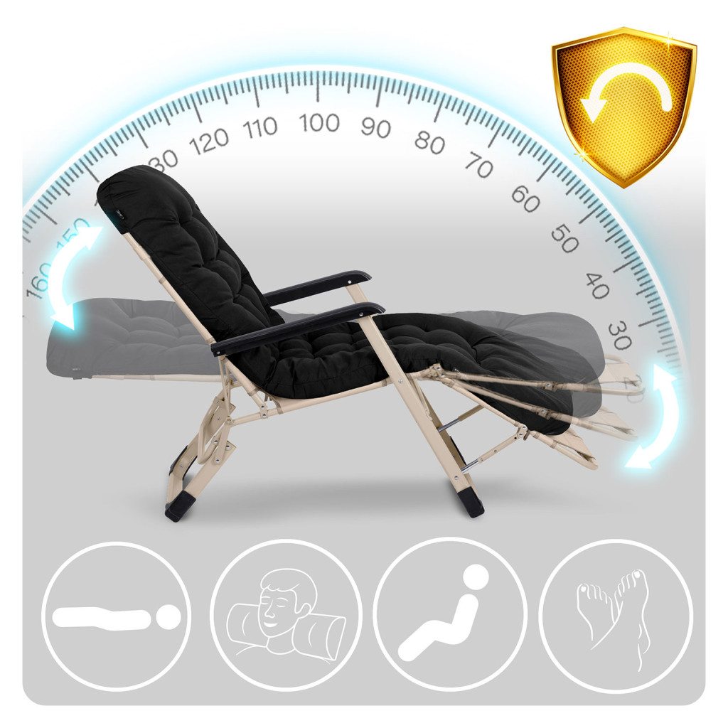 Az állítható háttámla és lábtámasz révén tizedmásodperc alatt megtalálod a tökéletes testhelyzetet, legyen szó napozásról vagy esti olvasásról. A steppelt, levehető párna pihe-puha támogatást ad, miközben a karfák kényelmessé teszik a fel- és leülést. Ha eljött a pakolás ideje, a ležak lapra hajtható, így minimális helyet foglal a tárolóban vagy az autó csomagtartójában – praktikus társ minden szabadtéri programhoz.