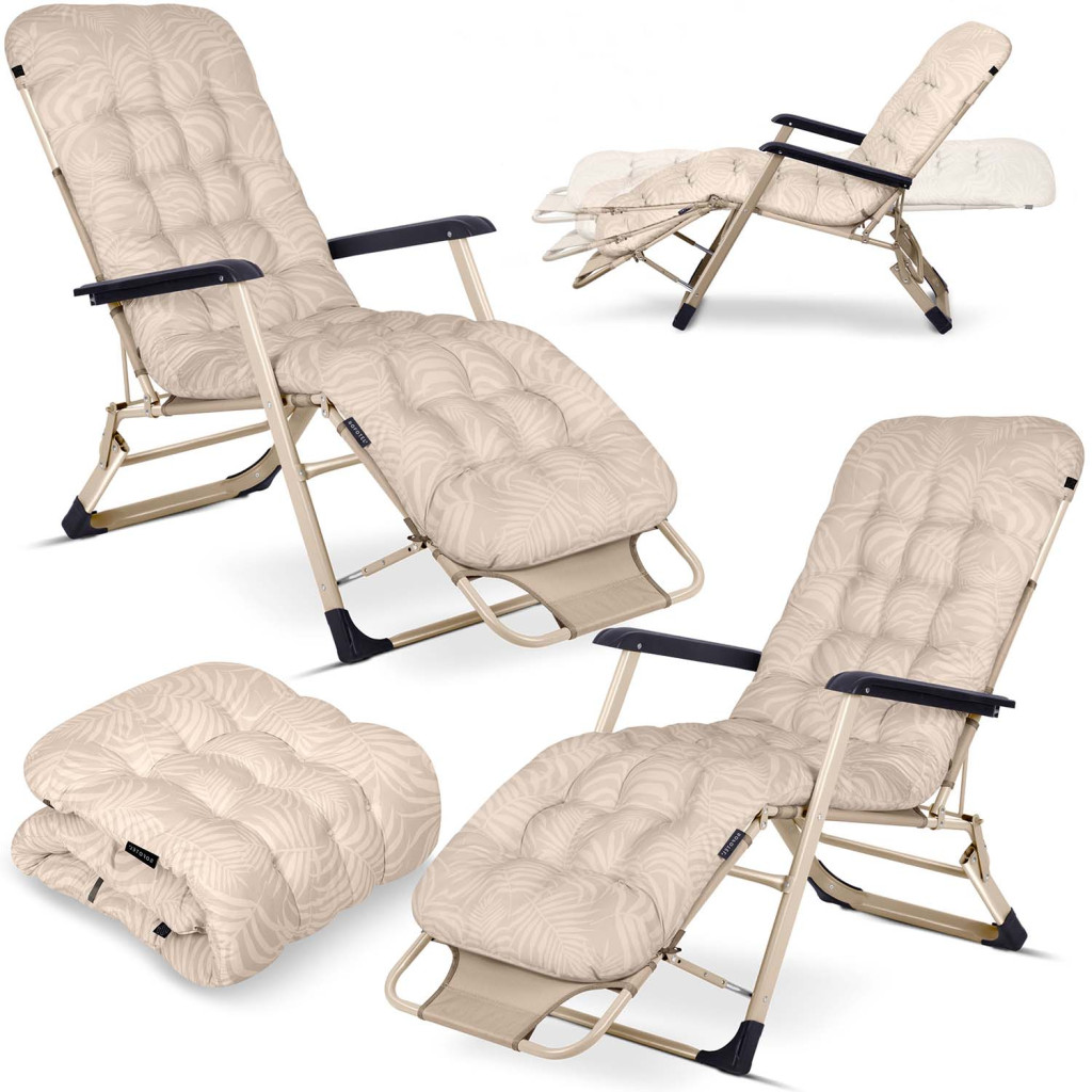 Élvezd a gondtalan pihenést a Sofotel ChillWell összecsukható napozóágy szettel! A két darabos, bézs árnyalatú garnitúra vastag, steppelt párnával kényeztet, háttámlája több fokozatban dönthető, lábtartója felhajtható. Masszív, mégis könnyű fémváza egy mozdulattal kinyílik, használat után lapra csukható. Ergonomikus formája követi a test vonalát, a műanyag karfák pedig biztos tartást adnak.