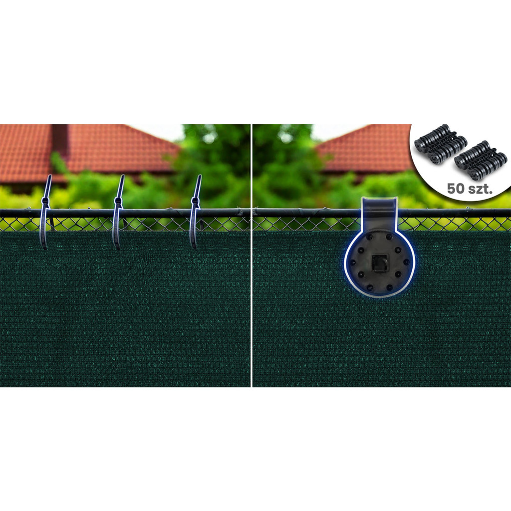 A Plonos zöld árnyékoló háló 1,2 x 50 m-es méretével egyetlen tekercsben 60 m² felületet kínál. A 140 g/m² grammsúlyú, nagy sűrűségű HDPE szövet 90% árnyékolást biztosít, így hatékonyan óvja kertedet, teraszodat vagy erkélyedet az erős napsütéstől, a széltől és a kíváncsi tekintetektől. A háló feltekerve érkezik, gyűrődésmentes, azonnal kifeszíthető, a csomagban található 50 klipsz segítségével pedig percek alatt stabilan rögzíthető a kerítéshez vagy korláthoz.
