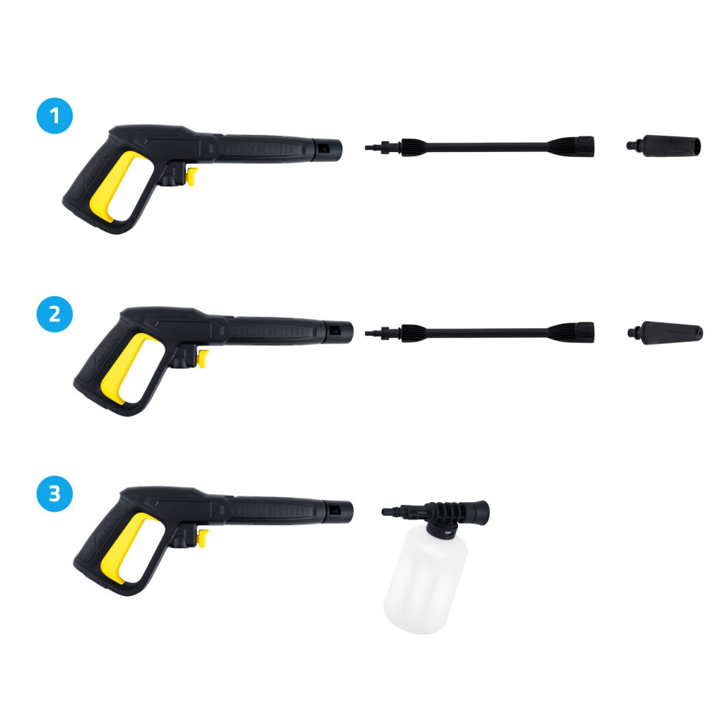 Az erős vízsugár percenként akár 420 liter vizet mozgat meg, ezért a sáros járólapoktól a zsíros motoralkatrészekig mindent könnyedén letisztít. A nyélbe épített biztonsági retesz megakadályozza a véletlen indítást, így gyerek- és víztakarékos. A fokozatmentesen állítható szórószár és a turbófej lehetővé teszi, hogy finom permetet vagy pengeszerű koncentrált sugárzatot kapj, mindig az adott felülethez igazítva a mosást.