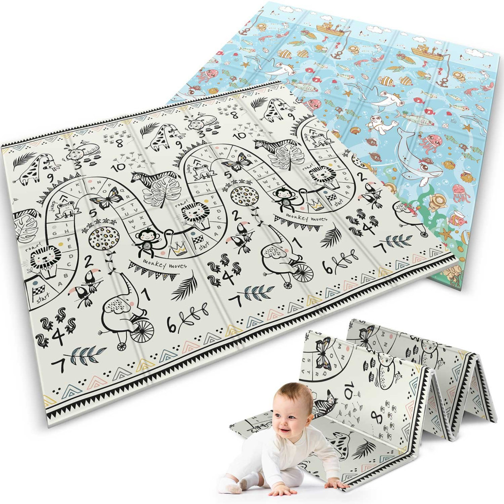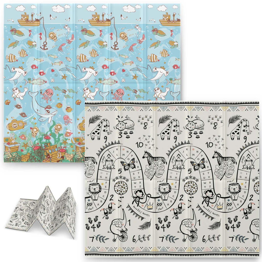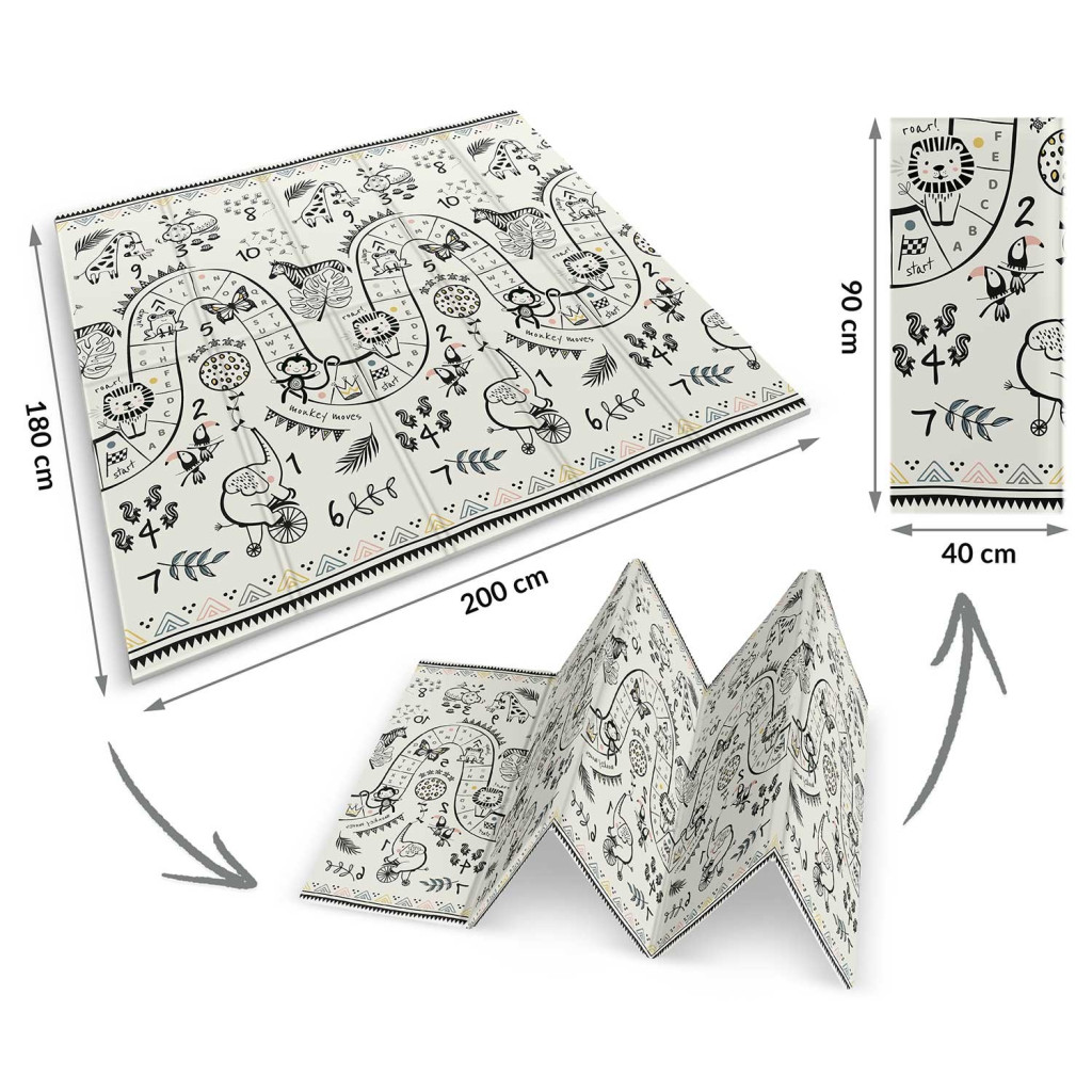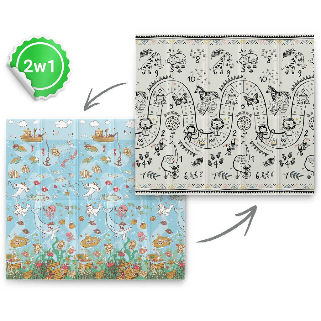 Játszószőnyeg, Nukido NK-340, óceán motívum/szafari, 200 x 180 cm, összehajtható, kétoldalas, vízálló, 1 cm vastag, XPE hab, csúszásgátló