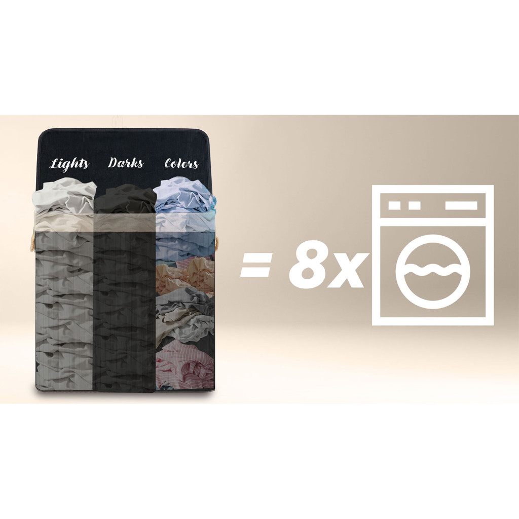 Kíméli az idődet, mert a ruhák már a gyűjtés pillanatában rendszereződnek, így a mosás előkészítése másodpercek kérdése. A természetbarát alapanyagok lélegző szerkezete elvezeti a nedvességet, és segít semlegesíteni a kellemetlen szagokat. Letisztult formája bármely fürdőszobába, hálóba vagy gardróbba illeszkedik, miközben sokoldalúan használható plédek, játékok vagy sportkellékek tárolására is. A masszív felépítés ráadásul gondoskodik arról, hogy éveken át szolgáljon.
