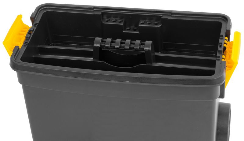 Ha gyakran kell szerszámokat a munkaterületre vinned, ez a modell leveszi a válladról a terhet. A nagyméretű alsó rekeszben elfér a fúrógép vagy a sarokcsiszoló, míg a tetején található, átlátszó fedeles szervezőkben rendszerezheted a csavarokat és biteket. A masszív zárak biztonságosan rögzítik a fedelet, a nagy átmérőjű kerekek pedig durva terepen is csendesen gurulnak, így nem kell többé kézben cipelned a nehéz felszerelést.