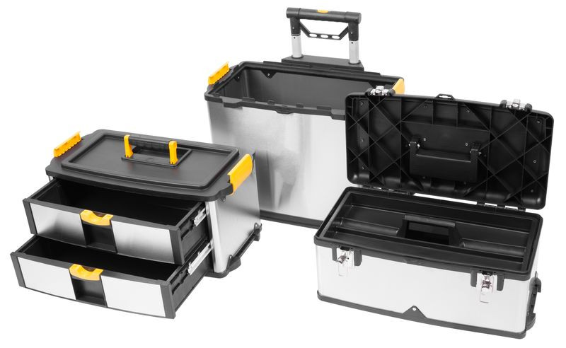Moduláris kialakítása révén minden munkafázishoz csak azt a részt viheted magaddal, amire szükséged van, így időt és energiát spórolsz. A rozsdamentes acél borítás ellenáll az ütődéseknek és a korróziónak, a sarkokon lévő ütéselnyelő műanyag keret pedig megvédi a tartalmat. A masszív, fémzáras csatok biztos tartást adnak, miközben egyetlen mozdulattal nyithatók. 16 kg-os saját tömege kiemelkedő stabilitást nyújt, mégis könnyen mozgatható a nagy átmérőjű kerekeken.