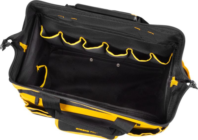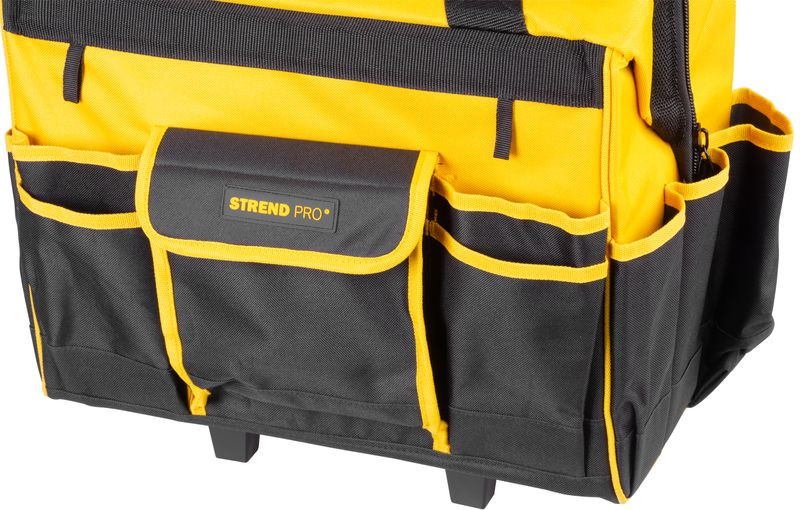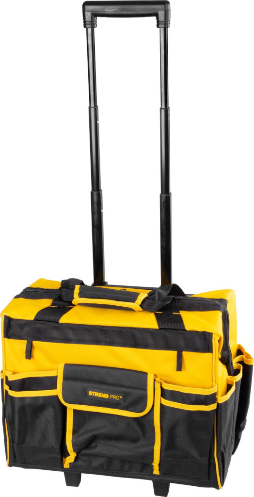 A Strend Pro gurulós szerszámtáska ideális társ, ha a műhelyből a helyszínre kell vinned a szerszámaidat. Strapabíró textilből készült, masszív alapra építve, így akár 20 kg-nyi szerszámot is biztonságosan elbír. 44 × 24 × 42 cm-es belsejében kényelmesen elférnek a nagyobb gépek, míg a sokoldalú oldalzsebekben rendszerezheted a csavarhúzókat, fogókat és kiegészítőket. A cipzáras fedél óvja a tartalmat a portól, az időjárástól, a kerekek és a kihúzható teleszkópos fogantyú pedig gördülékennyé teszi a szállítást.
