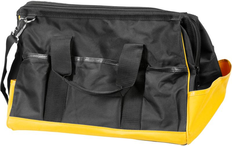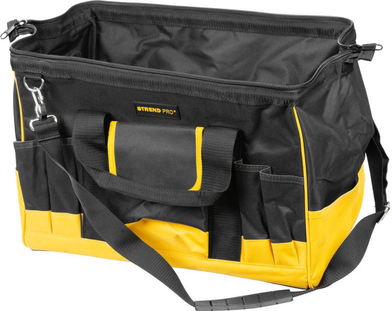 Legyenek kéznél a legfontosabb szerszámaid a Strend Pro TB-2013 textil táskával! A 47×29,5×25 cm-es, mindössze 1,52 kg tömegű táska erős, kopásálló poliészterből készült, így bírja a napi munkaterhelést a műhelyben, az építkezésen vagy akár otthoni barkácsolás közben. Kétirányú cipzár védi a belső rekeszt, a vastag, csúszásgátlóval ellátott vállpánt és a tépőzáras hordfülek pedig kényelmes és biztonságos szállítást garantálnak. Több külső zsebében rendezetten tárolhatod a csavarhúzókat, fogókat és egyéb kisebb eszközöket.