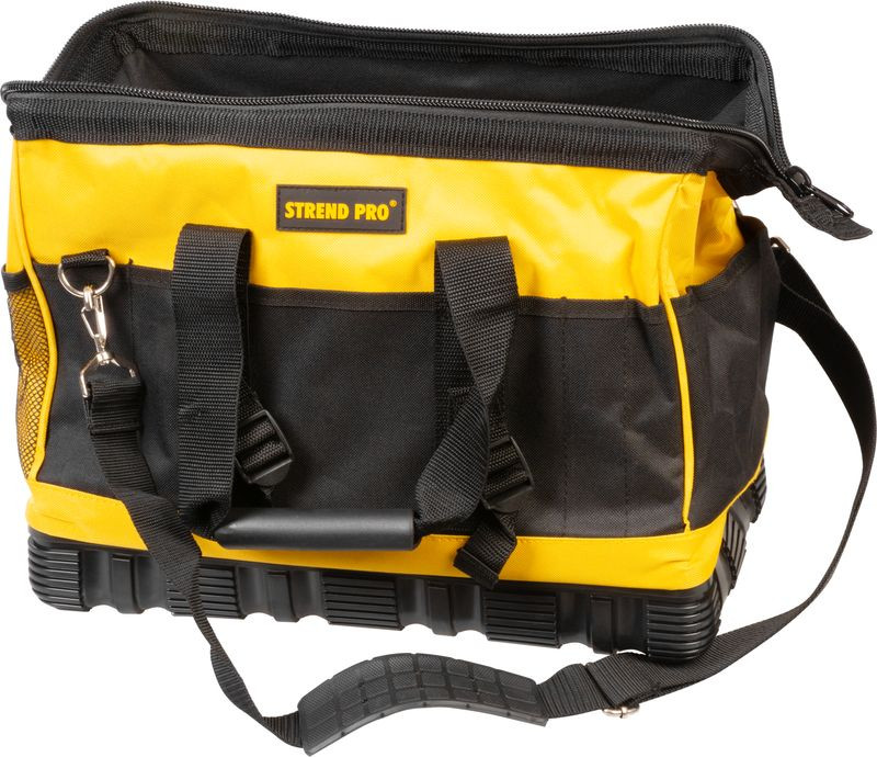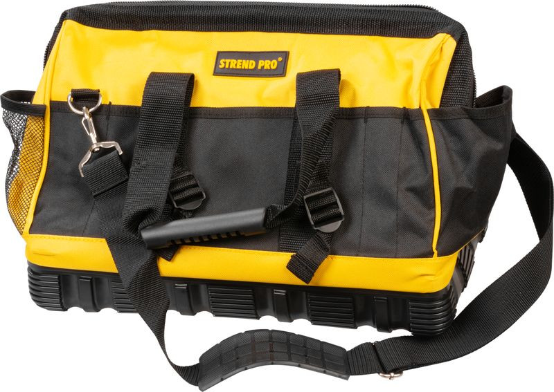 A Strend Pro TB-2014 textil szerszámtáskával mindig kéznél lehetnek a legfontosabb szerszámaid. A 40 x 20 x 36 cm-es, masszív poliészterből készült táska könnyedén elnyeli a csavarhúzókat, fogókat, mérőszalagot, sőt akár kisebb elektromos gépeket is. Teljes hosszában futó cipzárja gyors pakolást tesz lehetővé, erős vállpántja pedig tehermentesíti a karodat. A merevített, műanyagtalpas kialakítás stabilitást és extra védelmet biztosít, így a táska akár rázós munkaterületen is megállja a helyét.