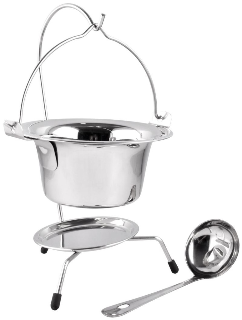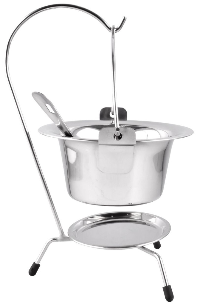 • Teljes szettben érkezik: tál, állvány és merőkanál – csak az étel hiányzik