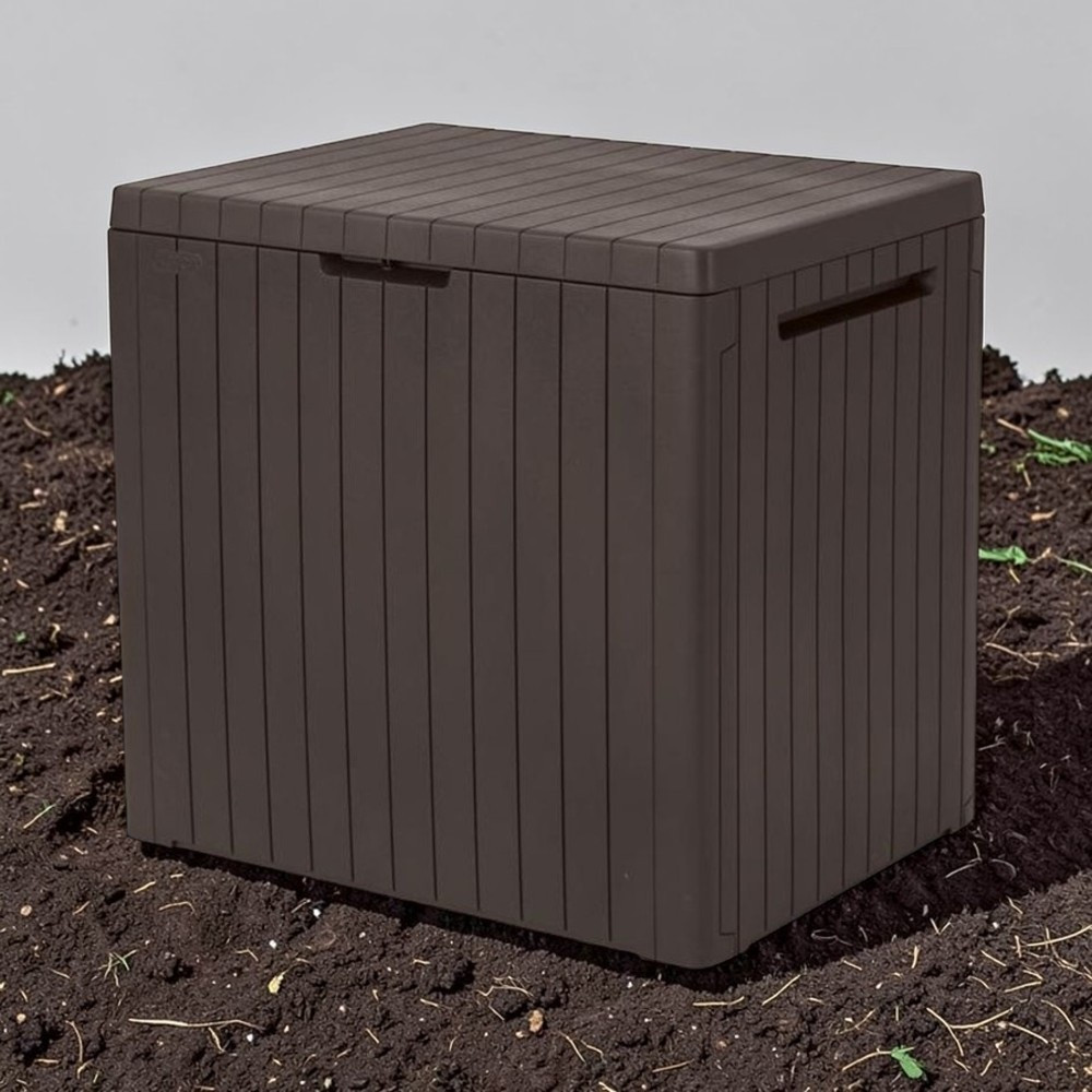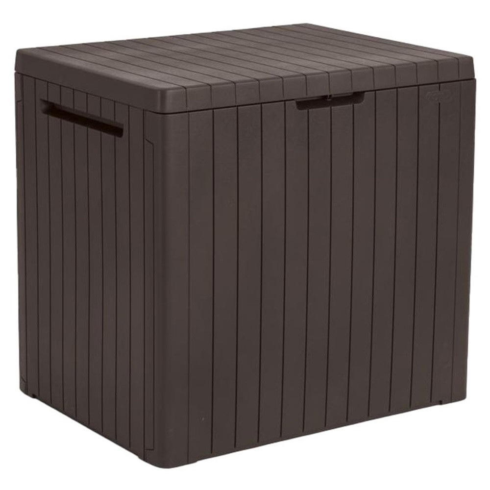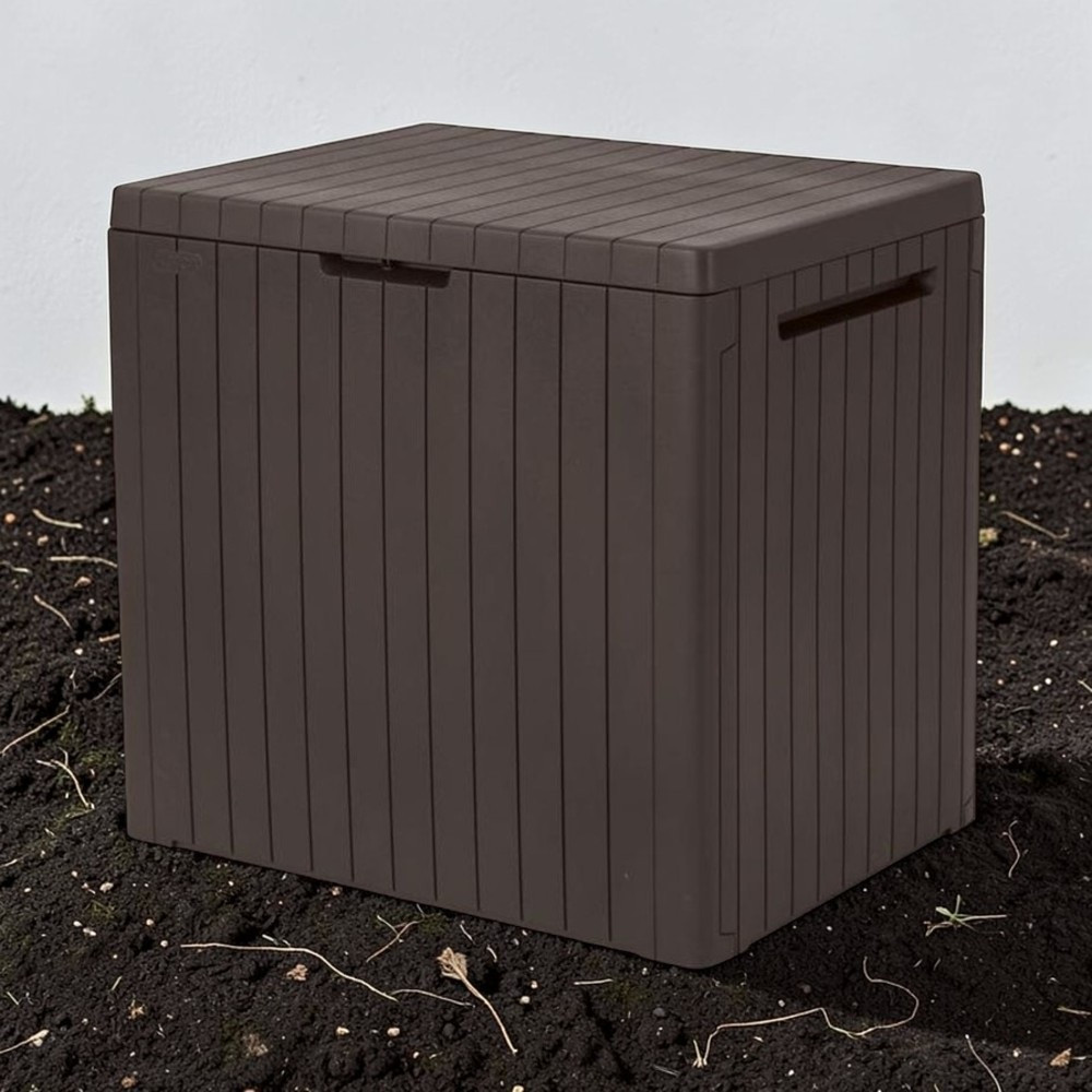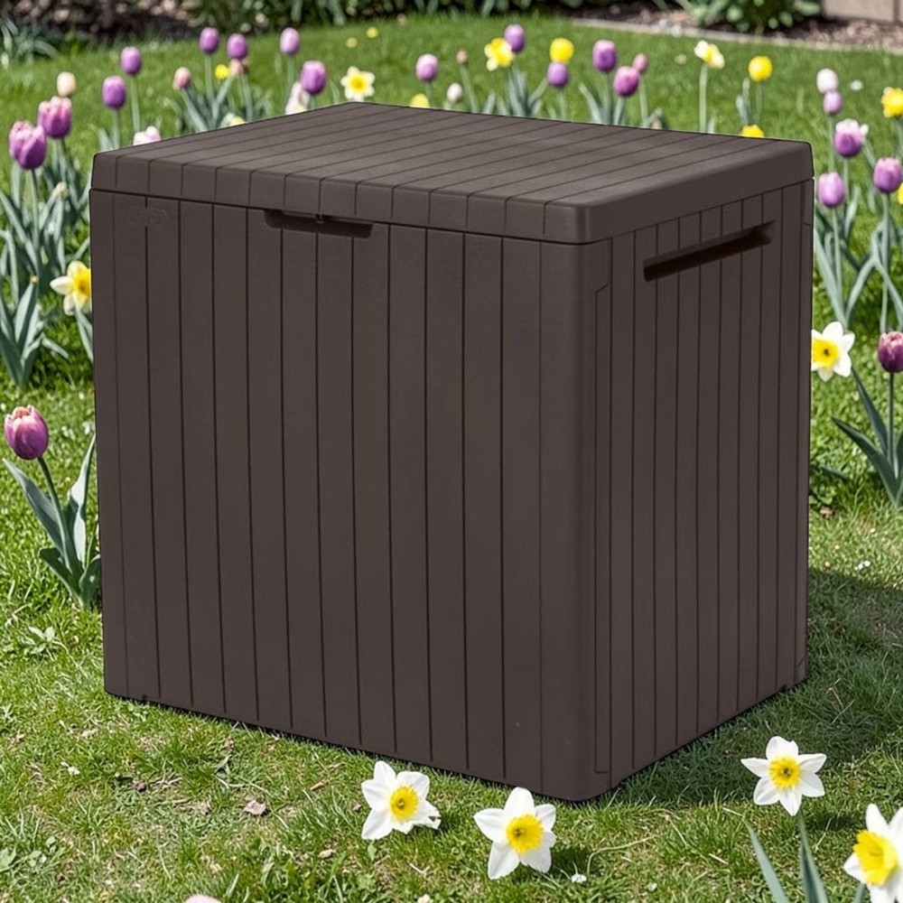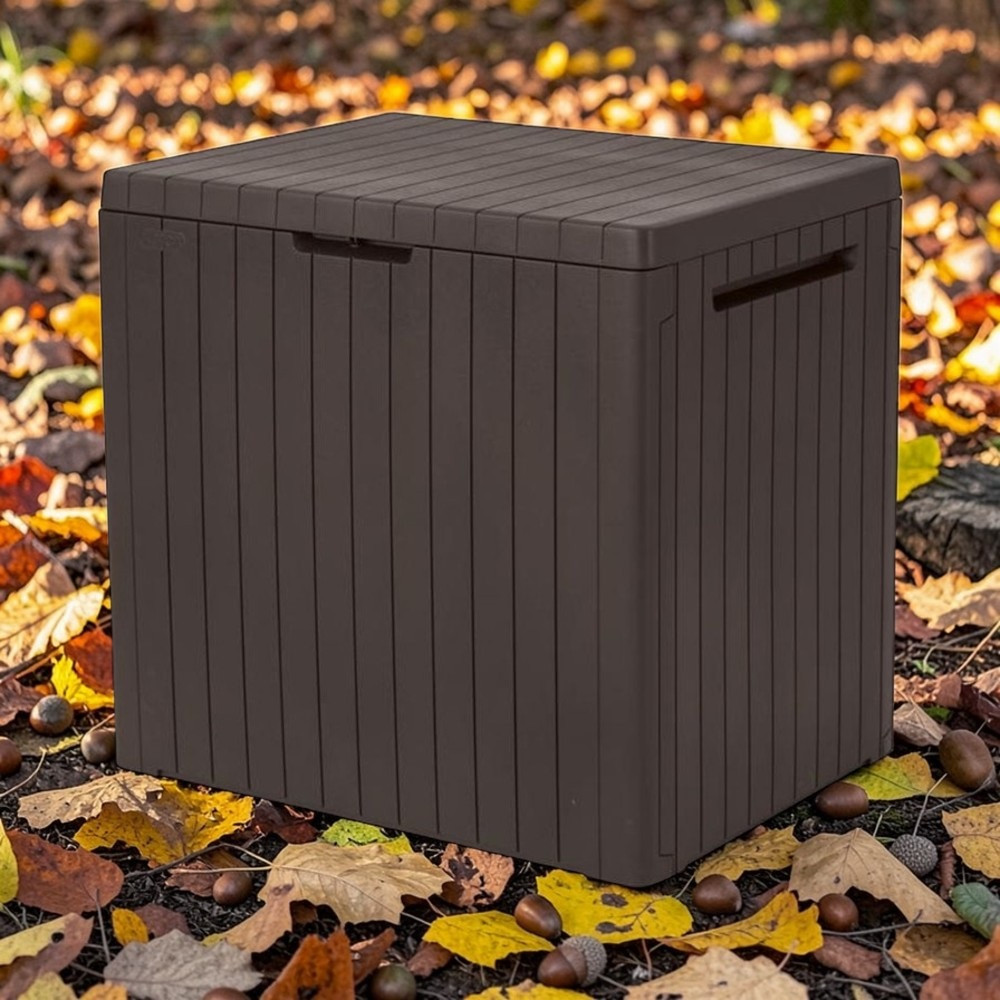 A Keter City tárolóláda 113 literes belső tere gyors és rendezett megoldást kínál. Barna, fa hatású felülete elegánsan simul a kert, terasz vagy előszoba hangulatához, miközben a strapabíró műanyag megóvja tartalmát az esőtől, a nedvességtől és az UV sugárzástól. Oldalsó markolatainak hála könnyen mozgatható, sík fedelén pedig akár virágot, italokat is elhelyezhetsz, így praktikus kis asztalként is helytáll. Szerszámot nem igénylő összepattintós szerkezete gyors összeállítást tesz lehetővé.