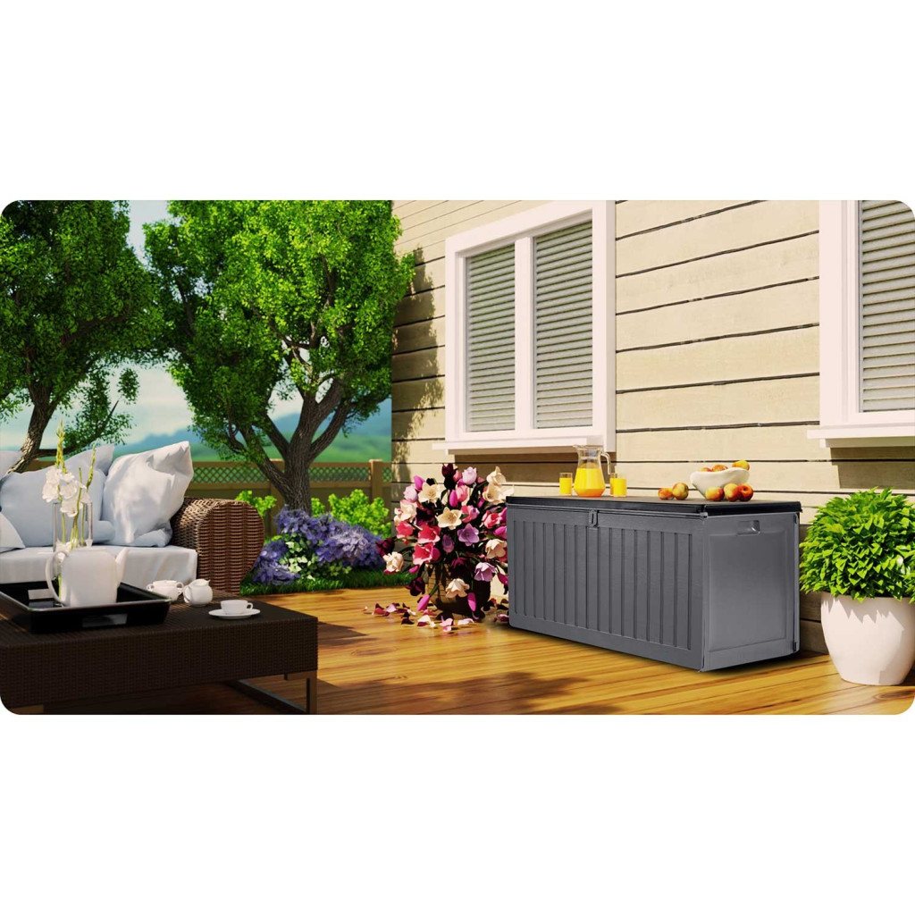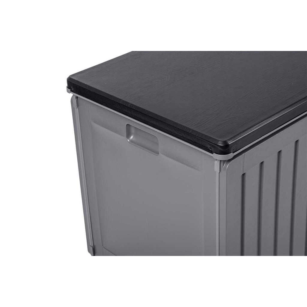 Ha állandó harcot vívsz a szétszórt kerti kiegészítőkkel, ez a láda lesz a titkos fegyvered. Nagy űrtartalma egyetlen mozdulattal elnyeli a párnákat, takarókat vagy a gyerekek kinti játékait, miközben szellőző bordázata megelőzi a dohosodást. A sima felület egyszerűen letörölhető, a szürke árnyalat pedig stílusosan illeszkedik modern és klasszikus környezetbe egyaránt. Könnyű súlya miatt szezonváltáskor is könnyedén áthelyezheted, fedelére pedig akár rá is ülhetsz rövid pihenőre.
