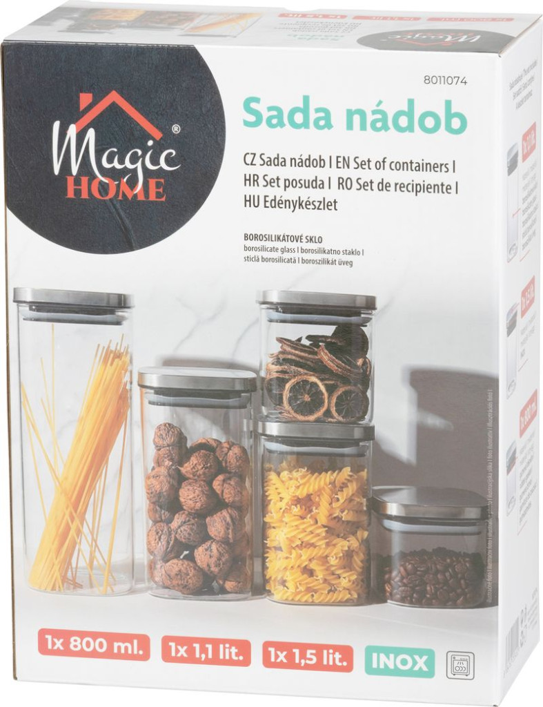 Rendszerezd konyhádat stílusosan a MagicHome 3 részes üvegedény készlettel! A 800, 1100 és 1500 ml-es tárolók vastag, kristálytiszta üvegfaluknak köszönhetően jól bírják a mindennapos igénybevételt, miközben átlátszó kivitelük révén egy pillantással látod, mi van bennük. A precízen illeszkedő, rozsdamentes acél fedők szilikon tömítéssel zárnak, így hosszabb ideig őrzik meg az alapanyagok frissességét és aromáját.