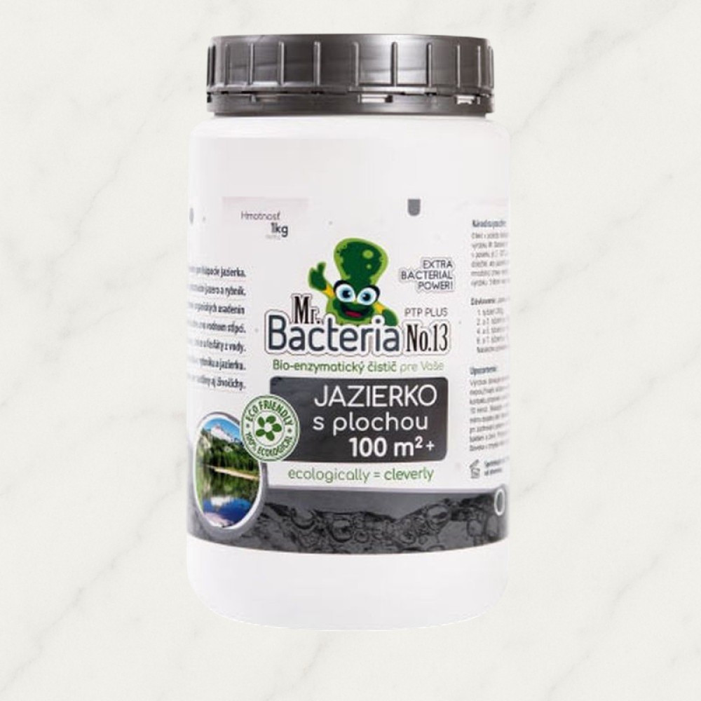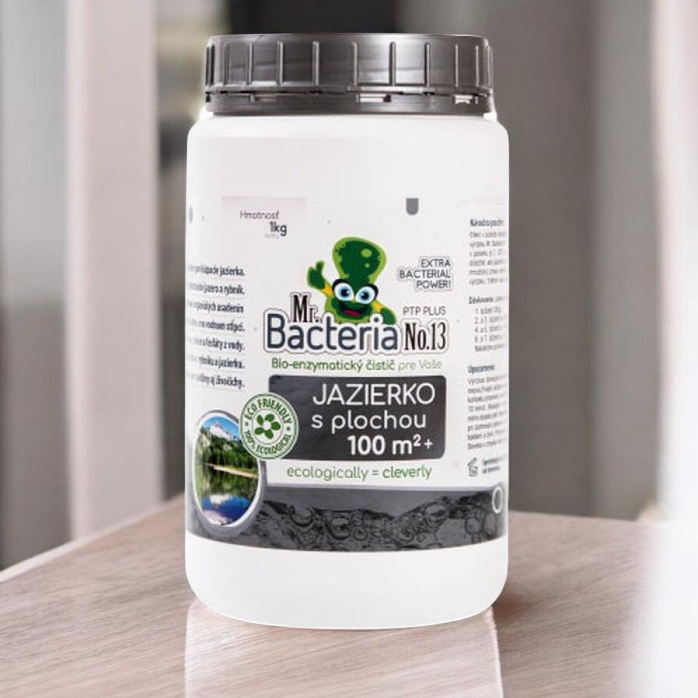 Aktivátor Mr.Bacteria No.13 1000 g kiszerelésben kimondottan a 100 m2-nél nagyobb tavak természetes tisztítására készült. A koncentrált, bio-enzimatikus por 4000 milliárd baktériumspórát és enzimet tartalmaz, így gyorsan lebontja a szerves iszapot, a foszfátokat és az algákat. A pozitív kemotaxisú baktériumok célzottan a szennyeződéshez vándorolnak, ott aktiválódnak, és rövid idő alatt csökkentik a zavarosságot. Rendszeres használatával a víz kristálytisztává válik, a fenéken felhalmozódott iszap eltűnik, a víz oxigéntartalma pedig nő, miközben biztonságos a halak és a vízinövények számára.