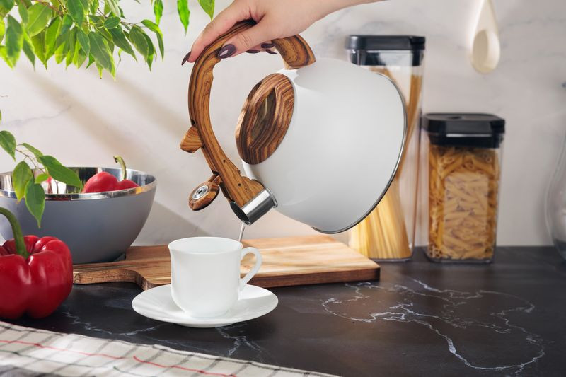 Egyszerre elegáns és praktikus: a 2,5 literes kapacitás több bögrényi italt biztosít, a sípoló jelzés pedig azonnal tudatja, ha a víz elérte a forráspontot. Akár indukciós, gáz-, kerámia- vagy halogén főzőlapon használod, az INOX acél egyenletes hőeloszlást garantál. A hőszigetelt, ergonomikus nejlon nyél nem forrósodik át, így sérülésmentesen emelheted le a kannát, miközben a modern, fa hatású dizájn természetes hangulatot visz a konyhába.