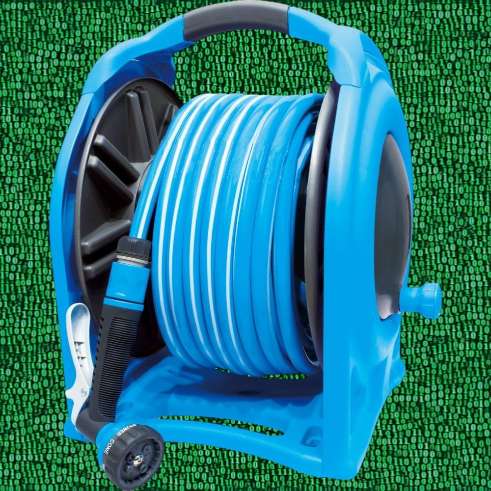 • Öntözés után tekerd vissza a tömlőt a kurblival, amíg feszesen a dobra nem simul