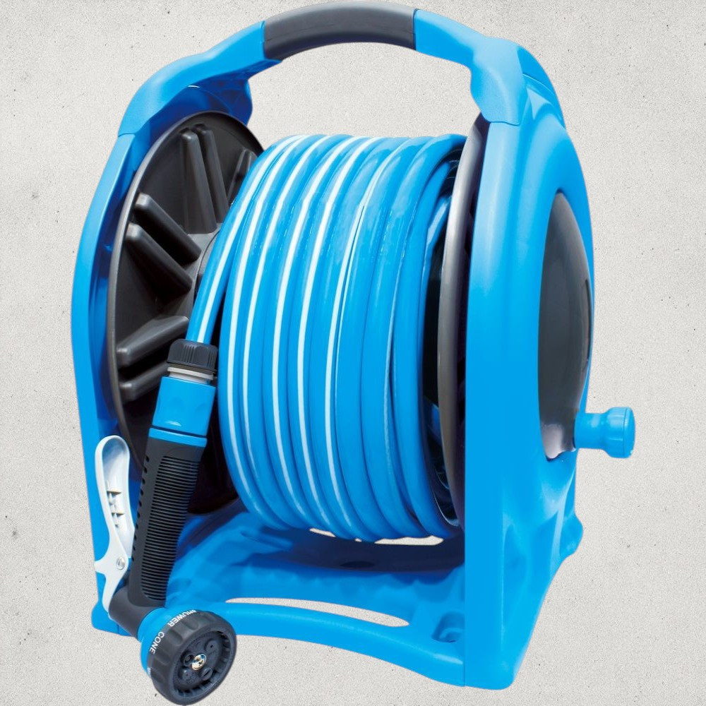 Ez a komplett locsolókészlet a gondtalan öntözés kulcsa: a 25 m-es tömlő bőven elég egy átlagos kert bejárásához, a könnyen forgatható dob pedig pillanatok alatt feltekeri a csövet anélkül, hogy gubancolódna. A falra szerelhető kialakításnak köszönhetően nem kell többé földön heverő, elhasalásveszélyes csövekkel bajlódnod. A kényelmes pisztolyfej különböző szórásképeivel minden növény pontosan annyi vizet kap, amennyire szüksége van.