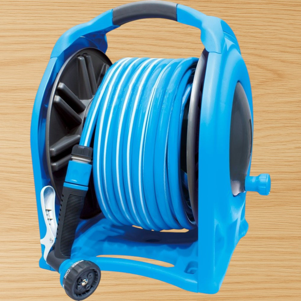 AQUACRAFT® 990076 tömlődobunkkal a kertöntözés gyerekjátékká válik: a 25 m hosszú, 1/2″ átmérőjű kerti tömlő egy könnyű, mégis masszív, élénk kék házban kapott helyet. A döntött ki- és bemeneti csatlakozó megakadályozza a tömlő megtörését, a csúszásgátló, puha gumifogantyú pedig kényelmes hordozást biztosít. Falra is rögzíthető, így helytakarékosan, mindig kéznél tarthatod. A mellékelt pisztolyfejjel finom permettől erős sugárig szabályozhatod a vízáramot.