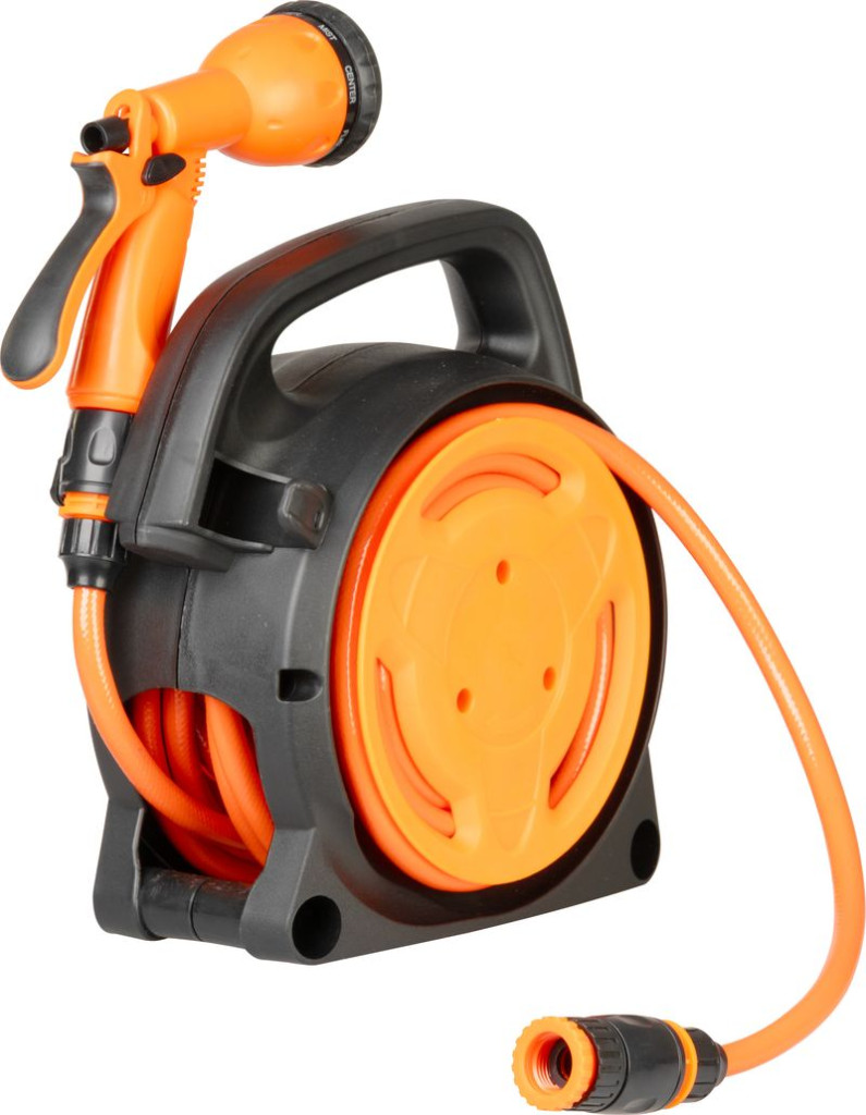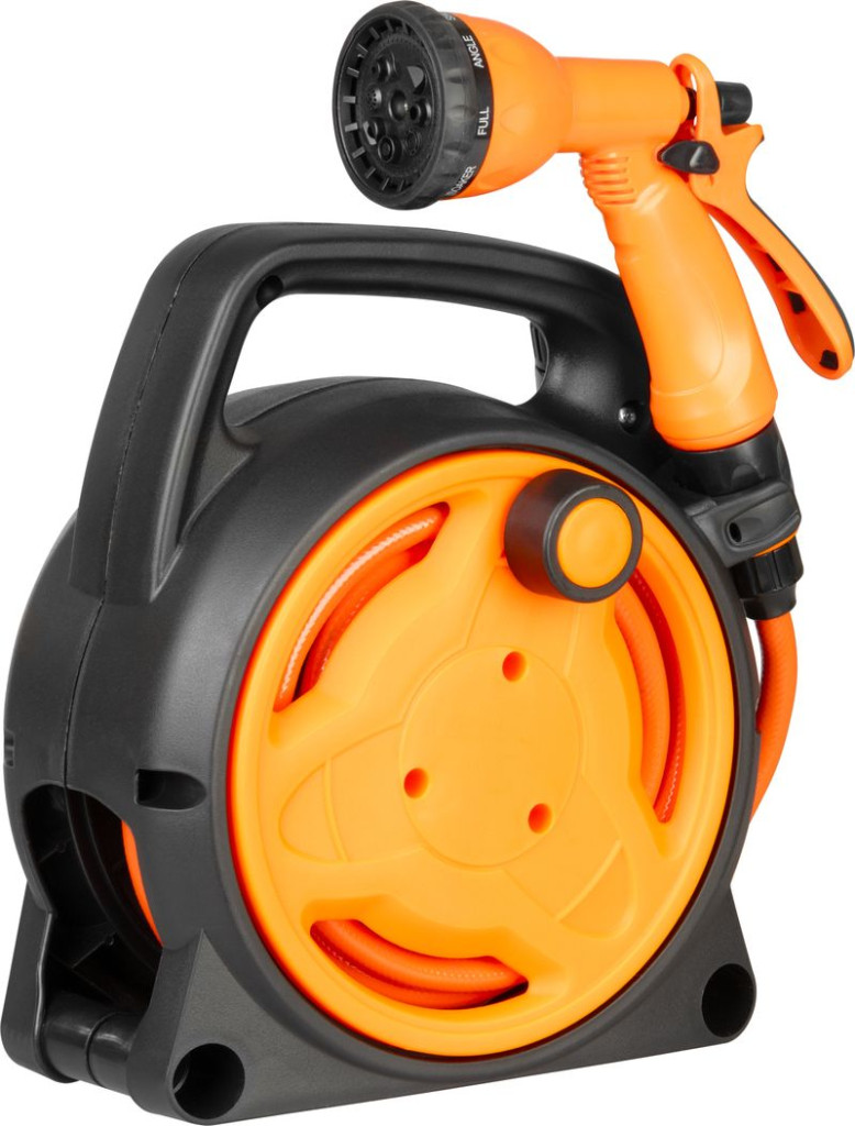Egyszerre kapod meg a kompakt tárolást és a változatos locsolást: a zárt dob védi a csövet a napsütéstől, a pisztoly nyolc féle szórásképe a zsenge palántától a dús sövényig mindent lefed. A gyorscsatlakozók pillanatok alatt a csapra pattannak, a hat bar nyomásállóság pedig biztosítja a folyamatos, egyenletes vízáramot. Ráadásul csupán két kilogramm körüli súlya miatt könnyű átvinni a kert egyik végéből a másikba.