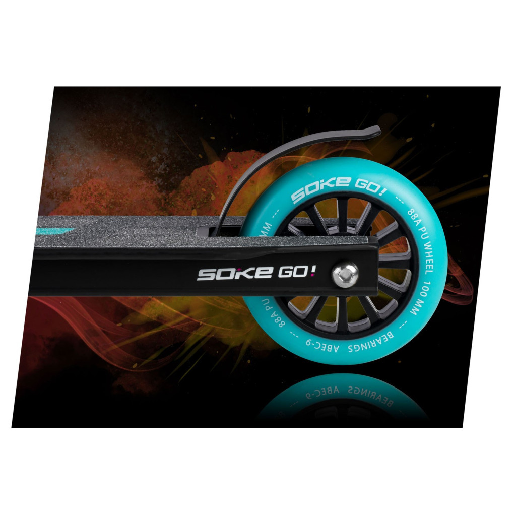 Éld át a trükközés szabadságát a SOKE GO! narancs freestyle rollerrel, amelyet kifejezetten ugrásokhoz, grindekhez és lendületes városi cirkáláshoz terveztek. A mindössze 3,7 kg tömegű, de mégis masszív, alumíniumvázas modell villámgyorsan reagál a mozdulataidra, így könnyedén húzhatod be az első tailwhipet vagy barspint. Fekete matt vázát élénk narancs markolatok és türkizkék, nagy kopásállóságú kerekek dobják fel, a dekken pedig az „UNSTOPPABLE” felirat emlékeztet arra, hogy semmi sem állíthat meg.