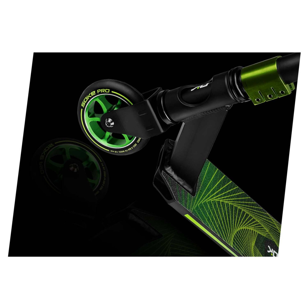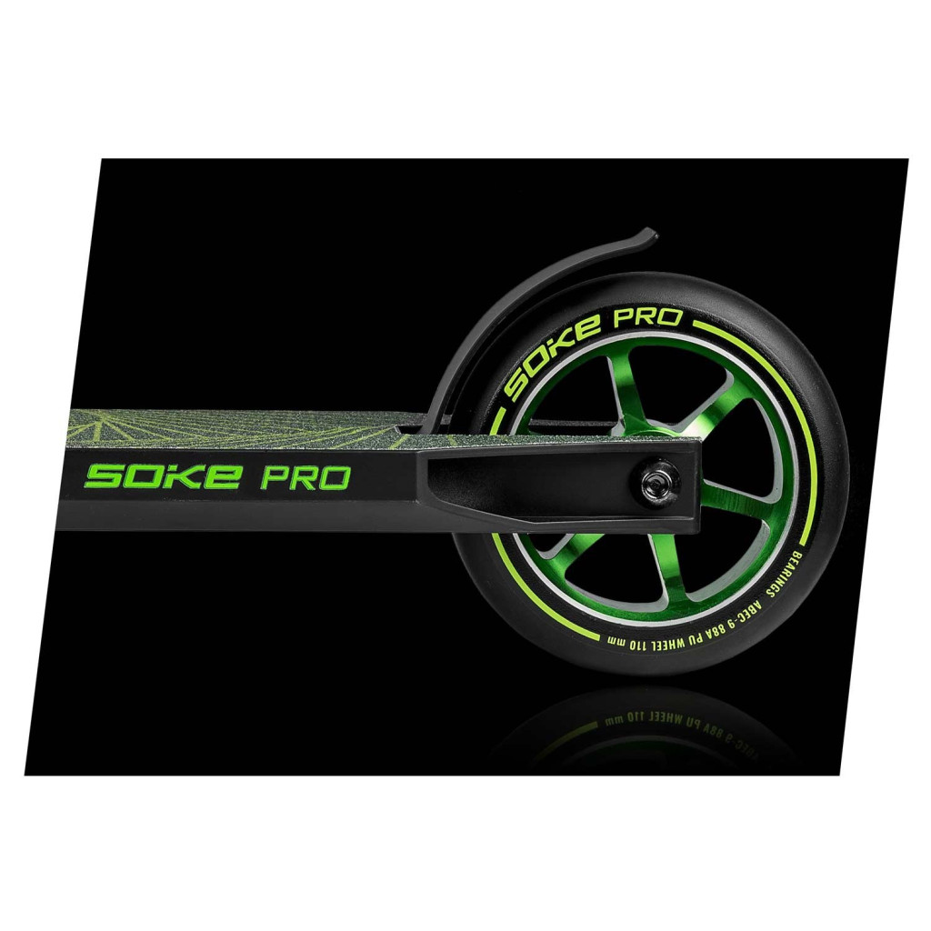 Szeld át a pályát és az utcát a SOKE PRO sárga–zöld trükkrollerral! A mindössze 4,3 kg-os, mégis rendkívül strapabíró konstrukció acél T-kormánnyal és erős alumínium deckkel teszi lehetővé a tailwhipet, barspint és manuált. A fekete vázon vibráló neon markolatok és lendületes grafika vonzza a tekintetet, míg a csúszásmentes fellépő magabiztos tapadást biztosít. Válaszd a stílusos lendületet, és emeld új szintre a trükkjeidet a SOKE PRO-val!