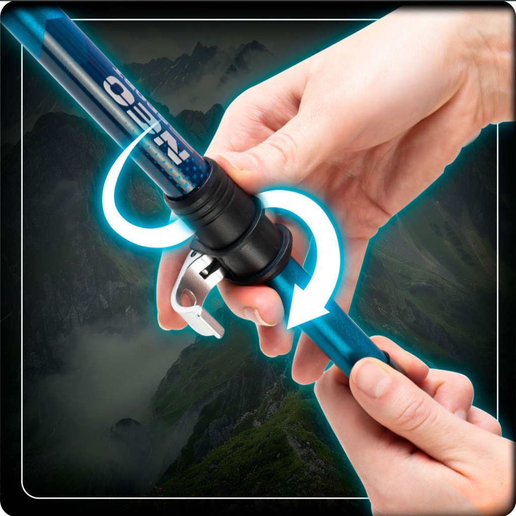 Forgasd minden lépésedet élménnyé az NS-382 Neo-Sport túrabot párral! A könnyű, mégis masszív alumínium test fémes kék színben ragyog, míg a parafa-EVA markolat természetes tapintást és magabiztos fogást kínál. A háromrészes teleszkópos kialakításnak köszönhetően gyorsan a testmagasságodhoz és a terephez igazíthatod, utána pedig stabil zár tartja a helyén. Cserélhető végek és különböző méretű tányérok gondoskodnak róla, hogy aszfalton, erdei ösvényen vagy havas lejtőn is biztos támaszod legyen.
