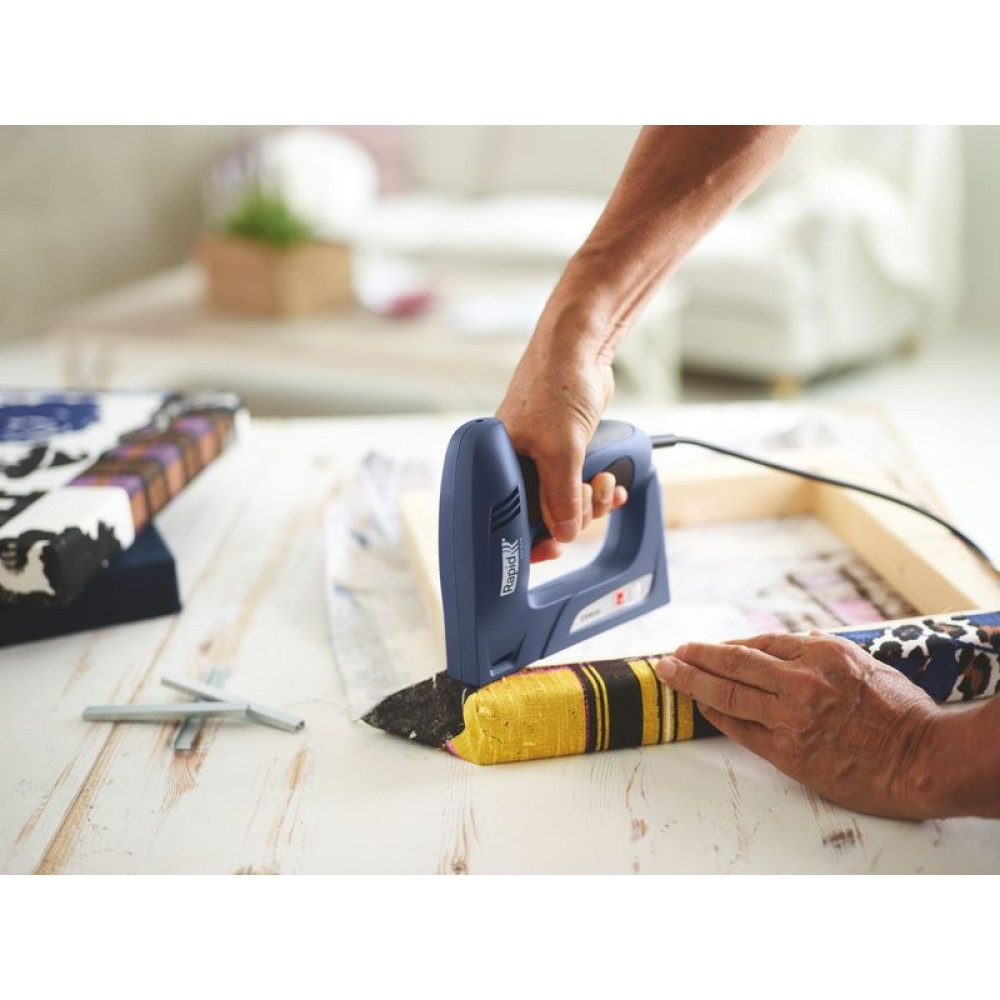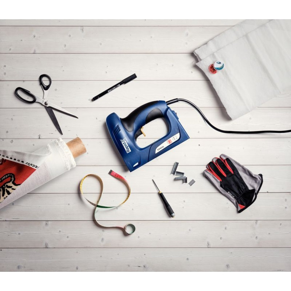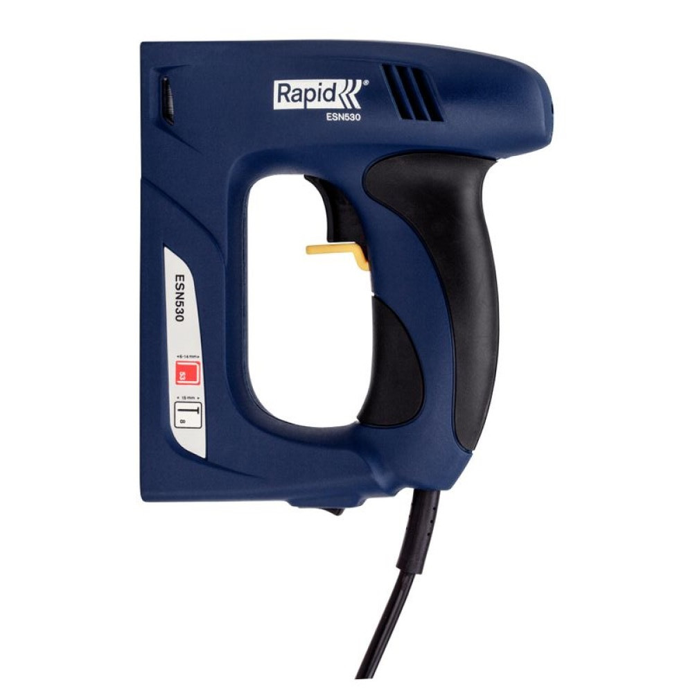 A Rapid ESN 530 elektromos kárpitos tűzőgép a ház körüli igényesebb feladatok megbízható eszköze. 53 típusú kapcsokkal (6–14 mm) és 8–15 mm-es szegekkel dolgozik, így szövetet, bőrt, szőnyeget vagy vékony falemezt is stabilan rögzít. Lapos orrkialakítása lehetővé teszi a sarkokban és szűk helyeken végzett pontos munkát. A teljesen acélból készült dupla tár, valamint a mindössze 1,1 kg-os súly hosszú élettartamot és kényelmes kezelhetőséget kínál.