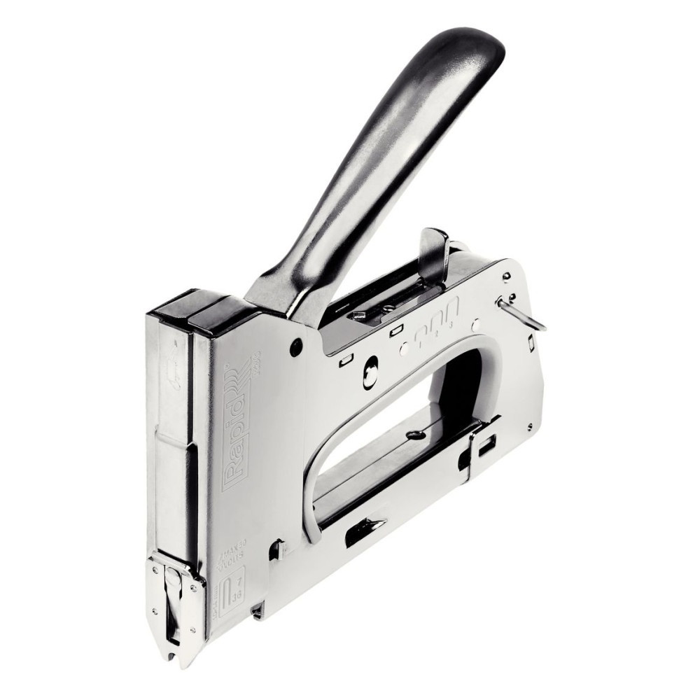 Precíz kábelrögzítésre tervezett Rapid R36 kézi tűzőgép: masszív, krómozott acélház, 0,9 kg-os súly és innovatív kioldómechanika gondoskodik a profi teljesítményről. A 36 típusú kapcsok 10–14 mm hosszban könnyedén áthatolnak a fa, MDF vagy gipsz hordozókon, miközben a lekerekített kapocsív kíméletesen öleli körbe a legfeljebb 6 mm átmérőjű kisfeszültségű kábeleket. Ideális hangfal, telefon, antenna vagy hálózati vezeték gyors és tiszta rögzítéséhez.