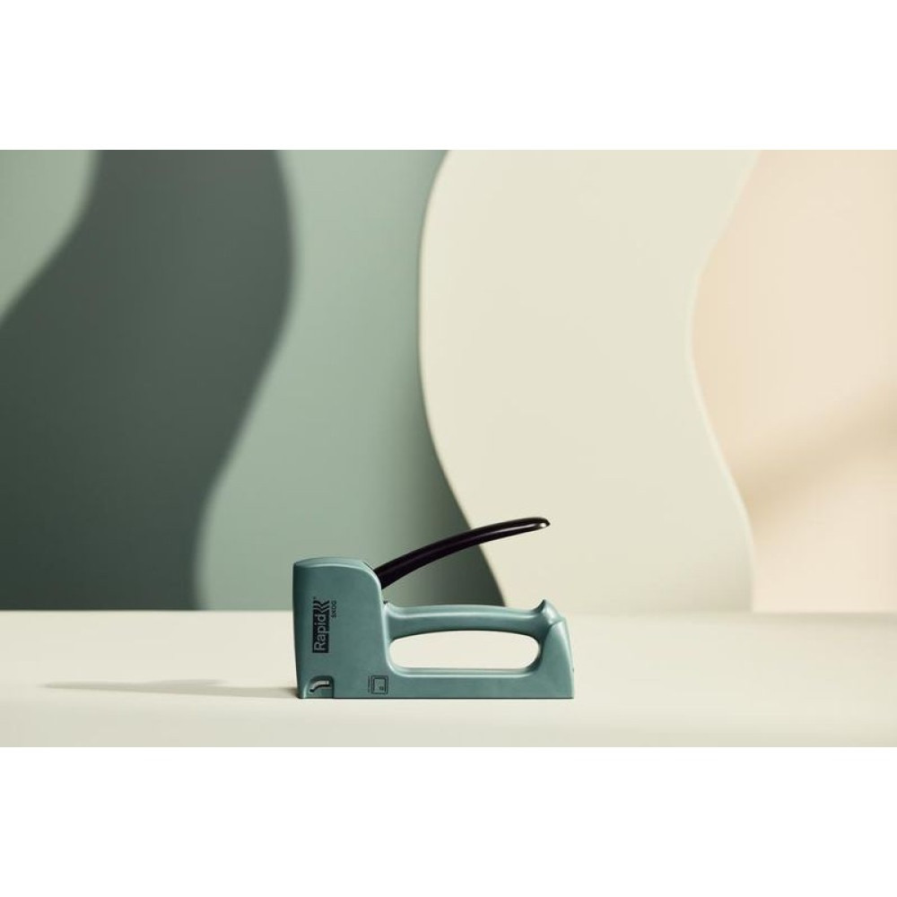 A RAPID Spirit of Sweden Skog R13 kézi tűzőgép a svéd precizitást és a környezettudatos gondolkodást egyesíti. A 90 %-ban újrahasznosított hűtőszekrény-műanyagból készült, mindössze 0,3 kg-os eszköz 13-as típusú, 4–10 mm hosszú kapcsokat lő be, így ideális kárpitozáshoz, textil- vagy bőrdíszítéshez, illetve poszterek, takarók rögzítéséhez. A Skog (erdő) zöld árnyalat stílusos megjelenést ad, a masszív, mégis könnyű szerkezet pedig hosszú távon is kényelmes munkát biztosít.