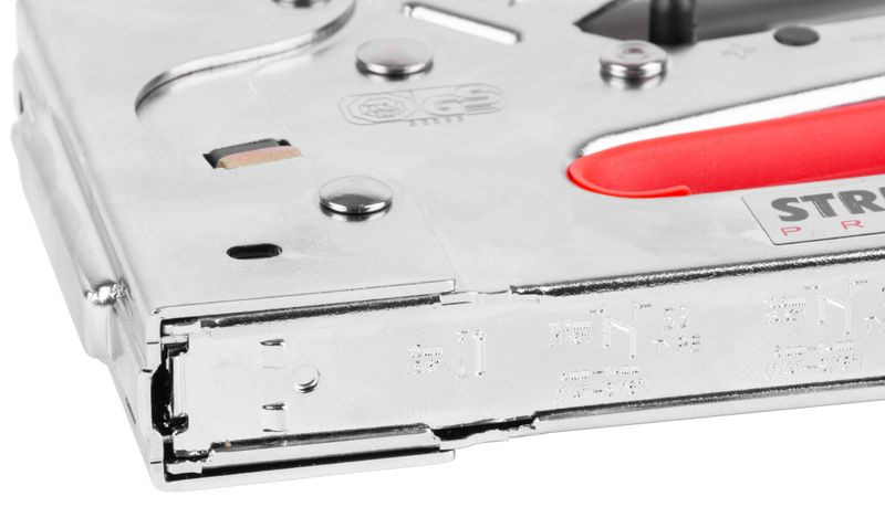 Ismerd meg a Strend Pro Premium SG821 tűzőgépet, amely 6–14 mm-es C kapcsokkal és 15 mm-es B szegekkel pillanatok alatt összefogja a szövetet, kárpitot, kartont vagy akár vékony faléceket. Polírozott, masszív fémburkolata nagy ütőerőt és hosszú élettartamot biztosít, miközben a piros betéttel ellátott markolat kényelmes fogást kínál. Az állítható ütőerőszabályzóval az anyagvastagsághoz igazíthatod a lövést, az 0,7 mm huzalvastagságú kapocsfészek pedig 10,6 és 11,3 mm gerincszélességet is befogad, így barkácsolóknak és profiknak egyaránt ideális.