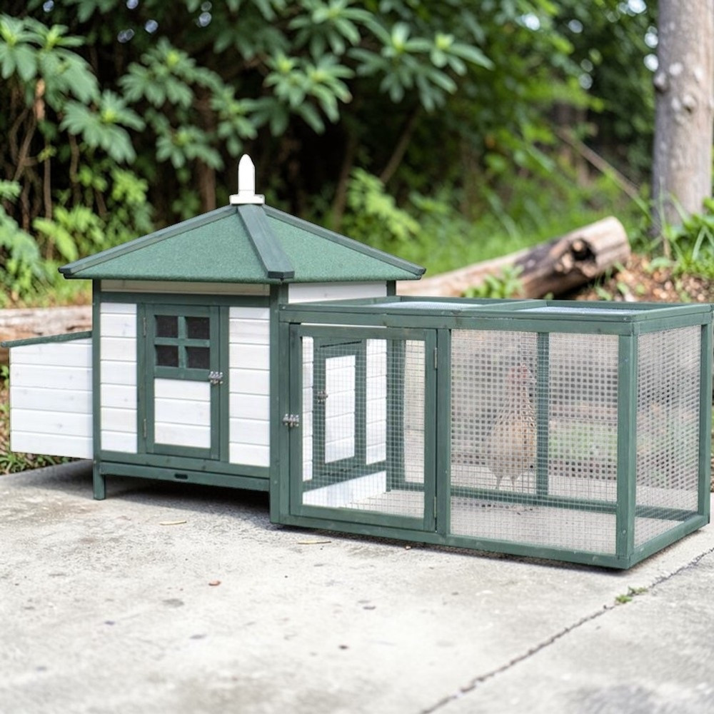 Ez a tágas, kétfunkciós ól optimális otthont ad a tollas lakóknak, miközben neked is időt és energiát spórol. A praktikus méret elfér egy kisebb kertben is, mégis bőséges mozgásteret biztosít. A nyitható tető és az oldalsó fészekhely miatt a napi ellátás gyerekjáték, a zárható drótajtók pedig távol tartják a ragadozókat. A masszív, impregnált fa váz és a bitumenes tető hosszú évekig ellenáll az időjárásnak, így nem kell évente új ólra költened.