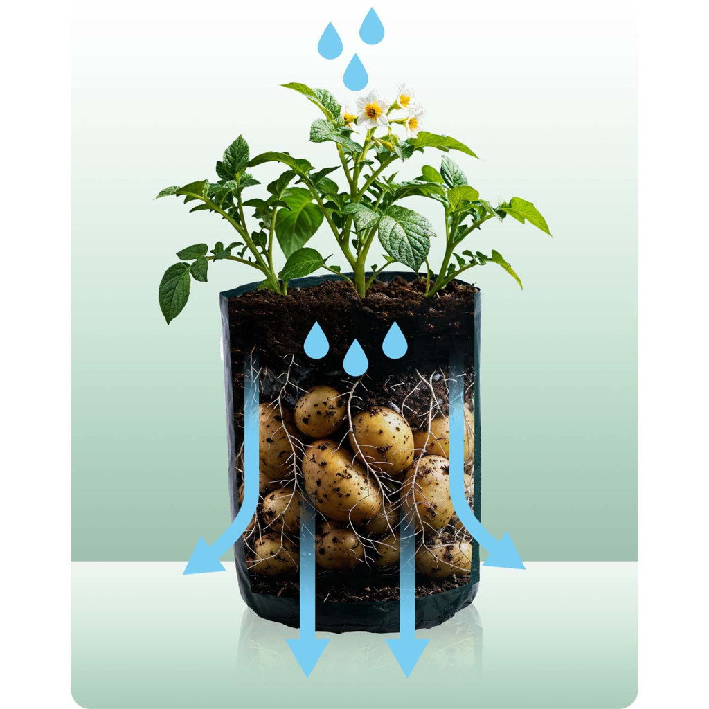 • Légáteresztő PE anyag: egészséges, erős gyökérzet