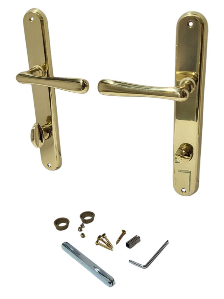 Az ELEGANT WC 08/090/0,6 balos vasalat szemet gyönyörködtető, fényes aranyszínű felületével eleganciát csempész bármely mellékhelyiség ajtajára. A hosszúkás pajzsba integrált, kényelmes kialakítású kilincspár finom íve biztos fogást kínál, míg a beépített forgózár egyszerűen kezelhető, gyors zárást tesz lehetővé. Masszív fémszerkezete tartósságot és stabil működést garantál, így a gyakori használat során is megőrzi kifogástalan megjelenését.