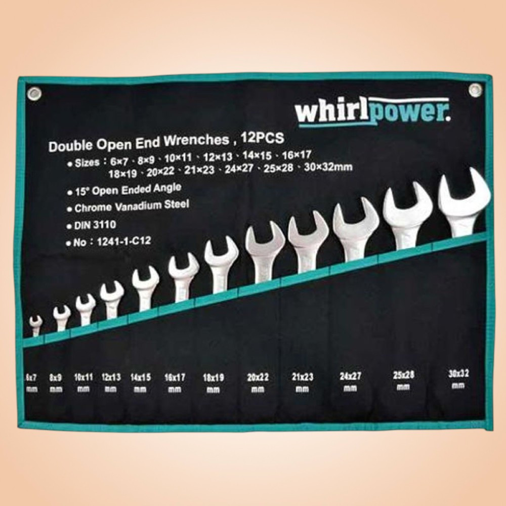 A Whirlpower 1241-1-C12 12 részes villáskulcskészlet nélkülözhetetlen társ a műhelyben és a ház körüli szereléseknél. A króm–vanádium acélból kovácsolt, dupla nyitott végű kulcsok 15°-ban döntött pofával rendelkeznek, így szűkebb helyeken is kényelmesen forgathatók. A méretkínálat 6x7 mm-től egészen 30x32 mm-ig terjed, lefedve a leggyakoribb csavar- és anyaméreteket. A kopás- és rozsdaálló felület hosszú élettartamot biztosít, a feltekerhető textil tok pedig rendezetten tartja a szerszámokat.