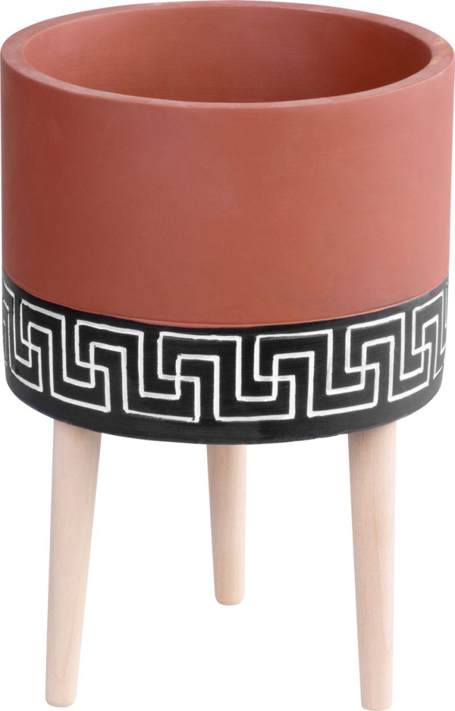 Az emelt kialakításnak köszönhetően a növény gyökerei szellősebben fejlődhetnek, a locsolás egyszerűbb, a padló pedig száraz marad. A 3,32 kg-os saját tömeg stabilan tartja a magasabb növényeket is, a fa lábak pedig nem karcolják a burkolatot. A geometrikus minta vizuális fókuszpontot teremt, így a cserép akkor is dekoratív, ha épp nincs benne növény. Egy stílusos kiegészítő, ami a modern és a klasszikus enteriőrben is otthonosan mutat.