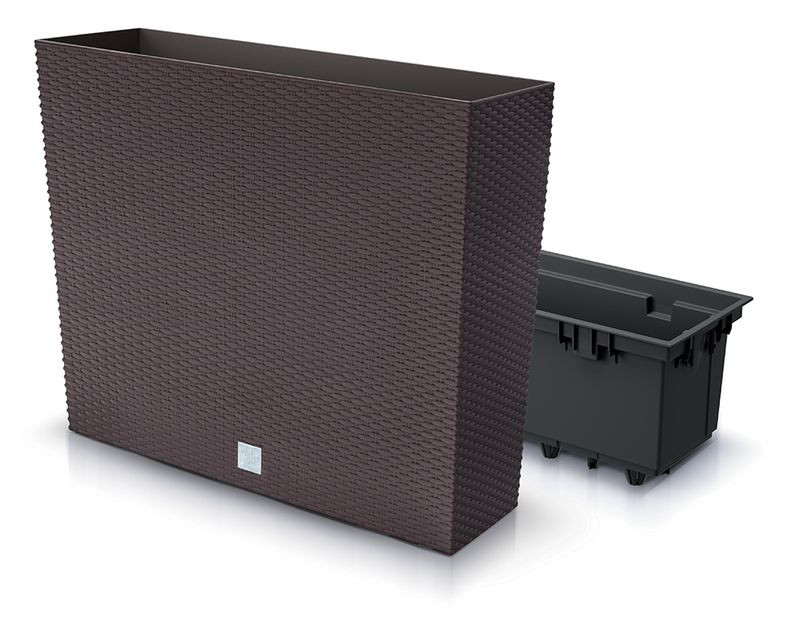A RATO Case virágcserép 580 x 180 x 498 mm-es méretével elegáns hátteret ad beltéri és kültéri zöldjeidnek. A barna, fonott rattan hatású felület természetes, mégis modern megjelenést kölcsönöz, miközben a strapabíró, UV-álló polipropilén hosszú élettartamot garantál. A praktikus, kivehető betét megkönnyíti az ültetést, a föld cseréjét és a locsolás szabályozását, így akár nagyobb növények is könnyedén kezelhetők.