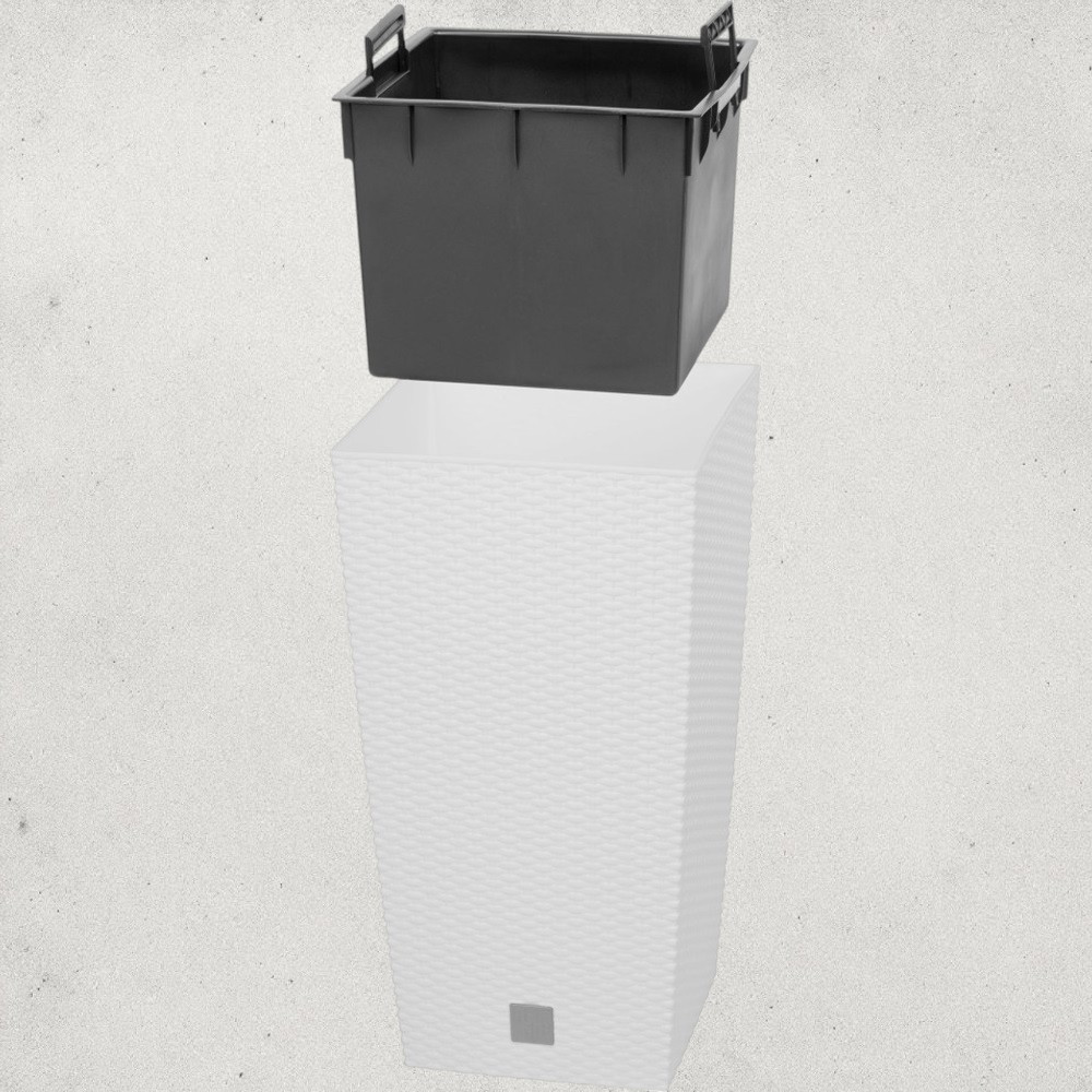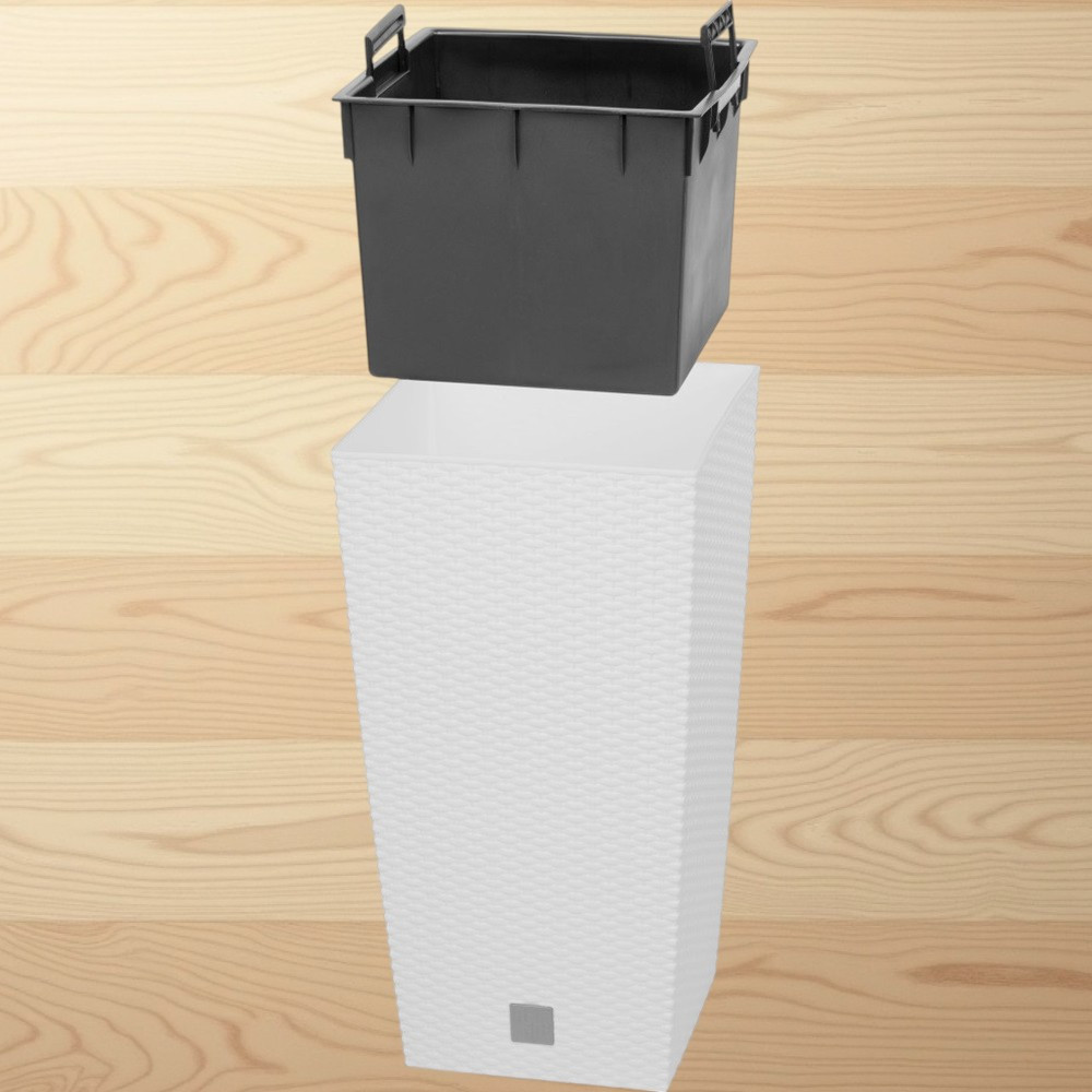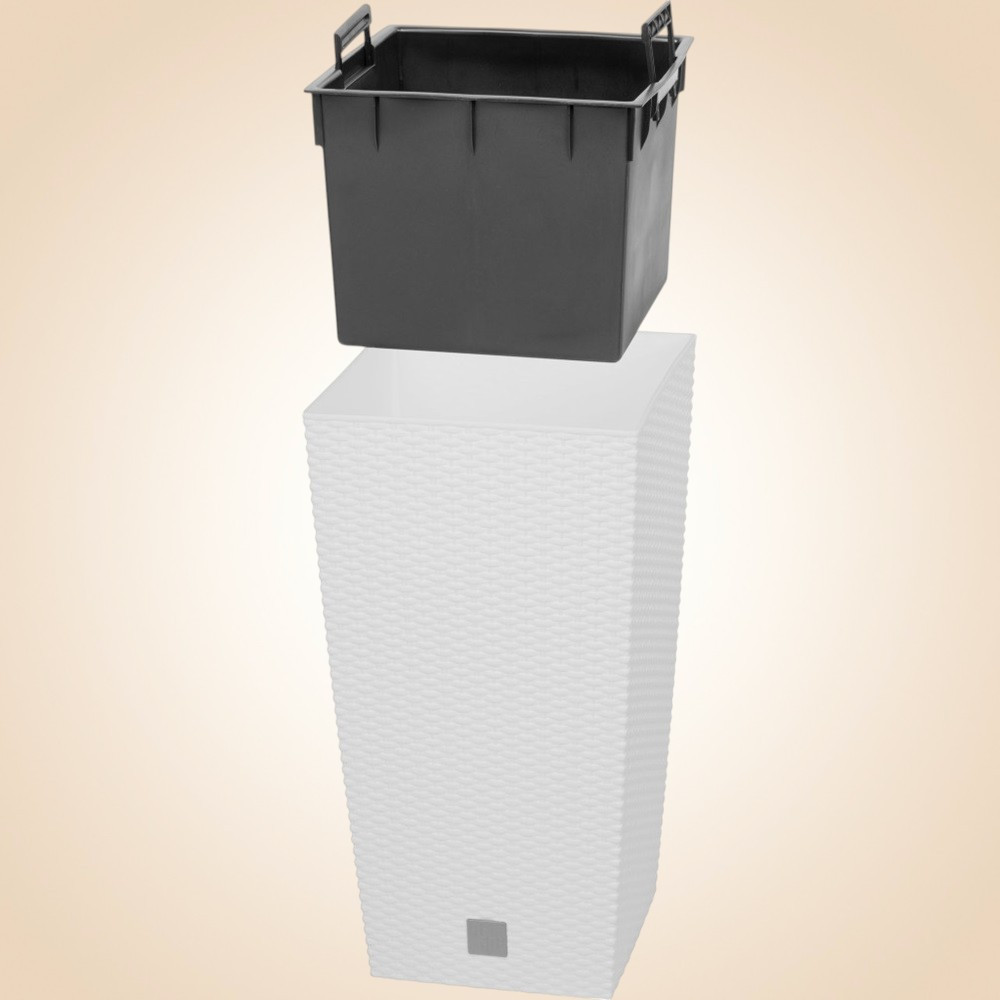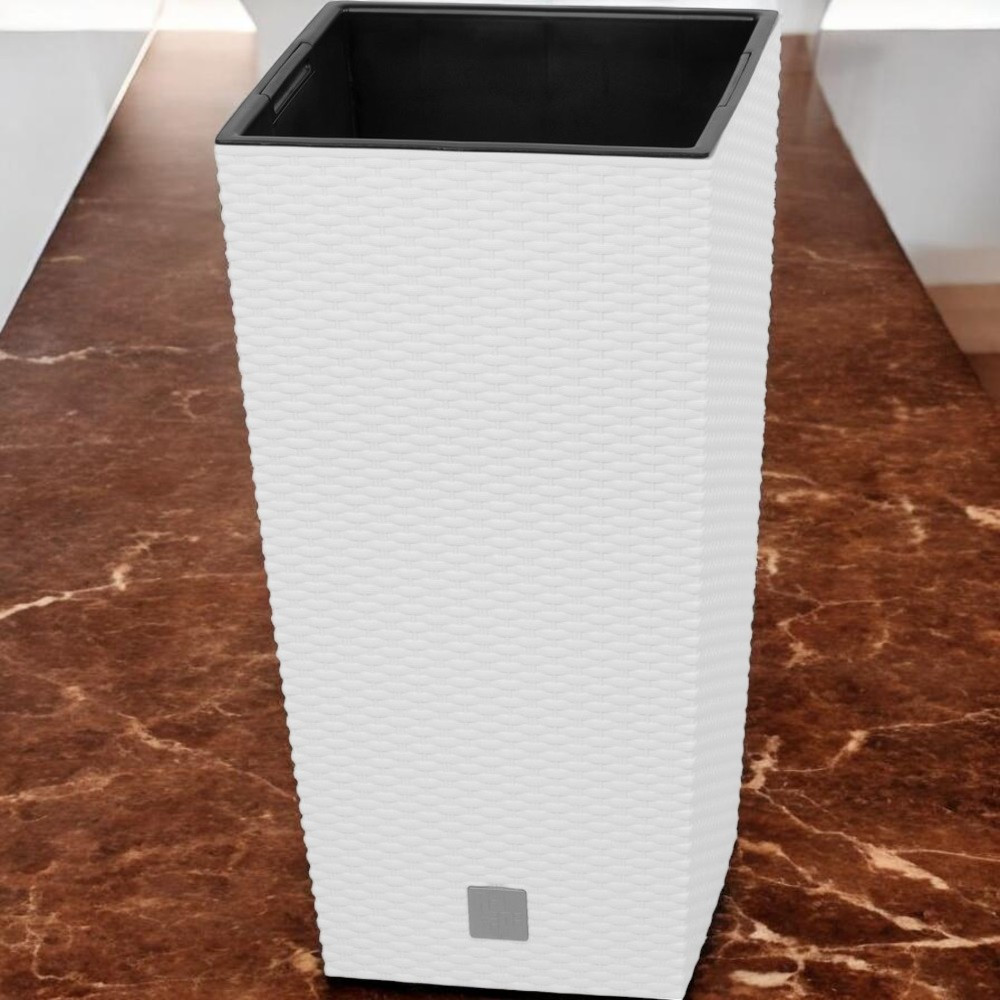 Frissítsd fel otthonod vagy kerted összképét a Prosperplast RATO Square 325 fehér virágcseréppel! A 32,5 × 32,5 cm-es alapterületű, 61 cm magas, elegánsan rattan mintás kaspó stabil támaszt nyújt magas díszfüveknek, illatos leandereknek vagy buja pálmáknak. Könnyű, mindössze 2,71 kg tömegű teste könnyed mozgatást tesz lehetővé, mégis masszívan ellenáll a szélnek. A kivehető betét 21 literes ültetőteret kínál, míg a cserép teljes kapacitása 49 liter, így a növények gyökerei bőségesen terjeszkedhetnek. A hófehér, letisztult felület modern és klasszikus környezetben is harmonikus fókuszpontot teremt.