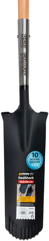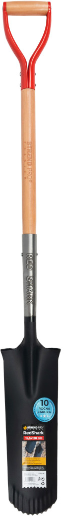 A Strend Pro Premium RedShark vízelvezető ásóval pillanatok alatt húzhatsz keskeny, szabályos árkokat csövekhez, kábelekhez vagy csepegtető tömlőhöz. A 128 cm hosszú, natúr keményfából készült nyél és a piros acél D markolat stabil irányítást ad, miközben a mindössze 2 kg-os súly óvja a karod. A fogazott, edzett szénacél penge fekete porfestést kapott, így ellenáll a rozsda támadásának, a 10 év garancia pedig biztosítja, hogy hosszú ideig társad maradjon a kertben.