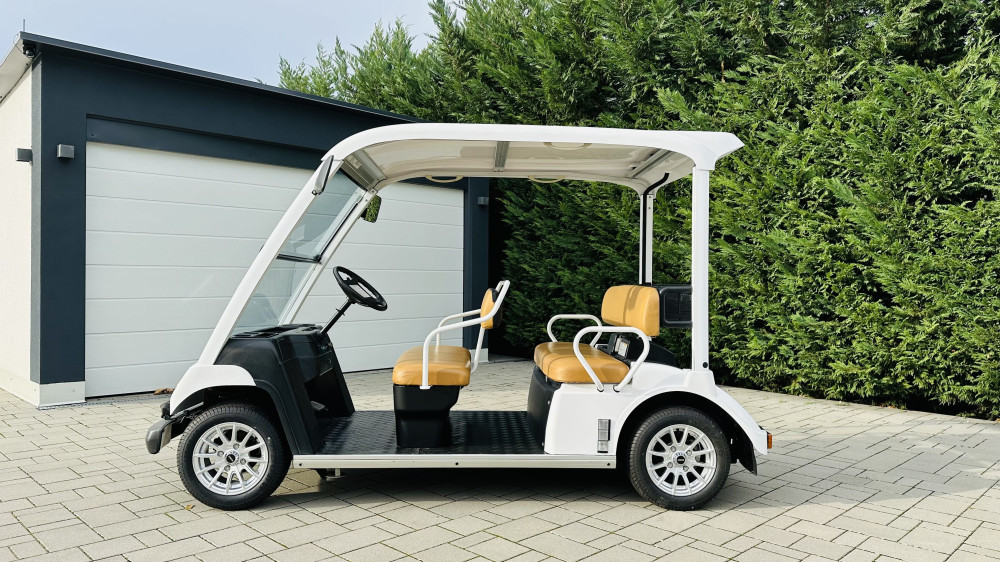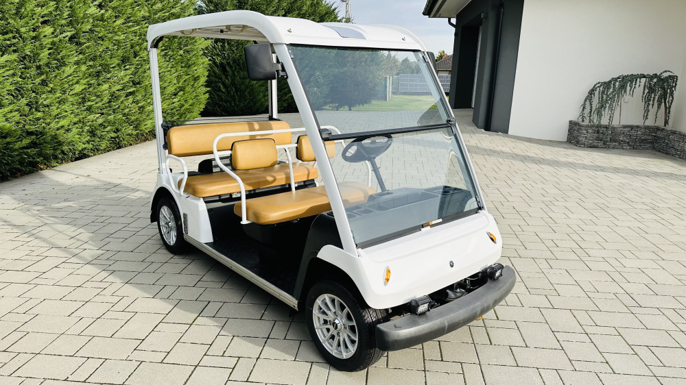 - Elektromos meghajtás: A Yamaha G31E egy környezetbarát elektromos golfkocsi, amely csendes, mégis erős motorral rendelkezik, így gond nélkül mozog 5 személlyel és teherrel is.